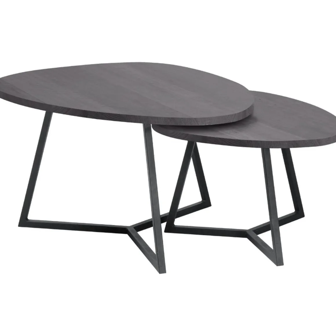 Deze moderne salontafelset is uitgevoerd in melamine in de kleur noir, wat een zwarte kleur is. Melamine ziet eruit als echt hout en heeft een licht reliëf waardoor het ook voelt als echt hout.
