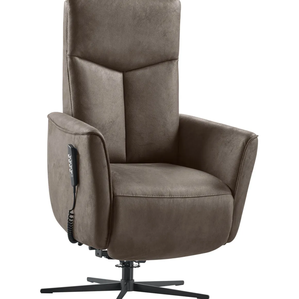 | Uitvoering | Uitgevoerd met rug E (Y-vorm met voorzetkussen) in microleder dakota 123-espresso met arm 3, elektrisch verstelbaar (2M) inclusief sta op hulp, elektrische verstelbare hoofdsteun, bedrade bediening met magneet (voorstaand links), accu, polyetherschuim met een bovenlaag van HR-koudschuim in de zitting, HR-koudschuim in de rug en 5-teensvoet (KMF3) zwart. |