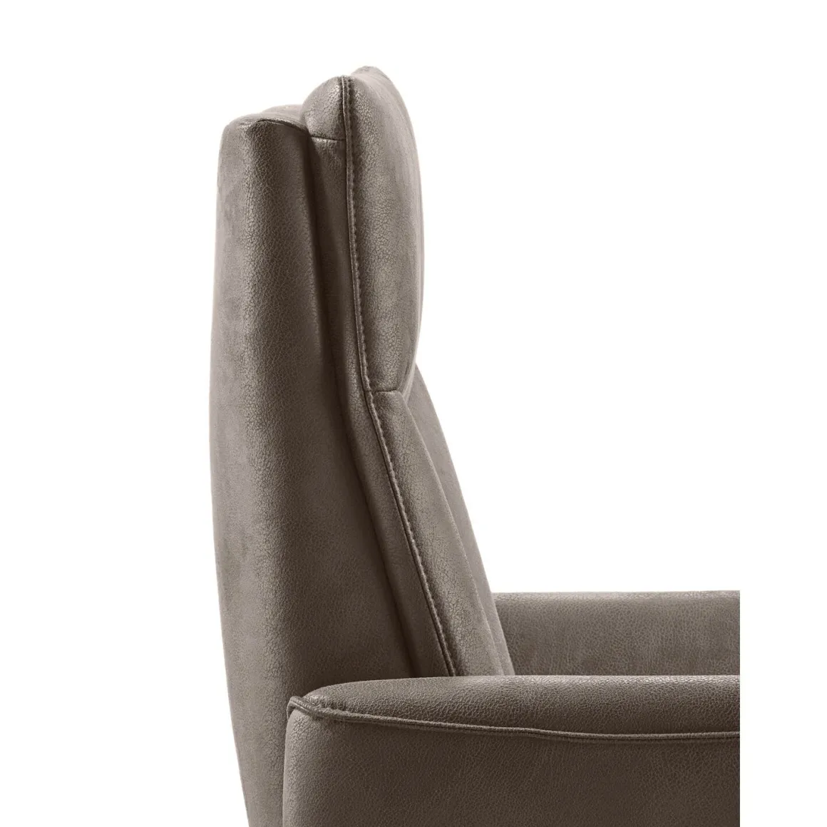 De relaxfauteuil Seduto heeft een moderne uitstraling. Deze uitvoering is bekleed met bruin microleder, een sterk en duurzaam materiaal dat zacht aanvoelt en comfortabel zit. Het Y-vormige stiksel met voorzetkussen in de rug voegt een subtiel detail toe, terwijl de volledig gestoffeerde armleuningen en zwarte 5-teensvoet de fauteuil een stoere en eigentijdse look geven.