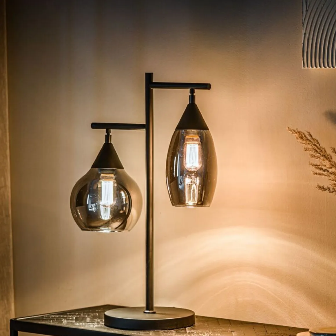 Tafellamp zwart smoke glas 2-lichts – Lungo