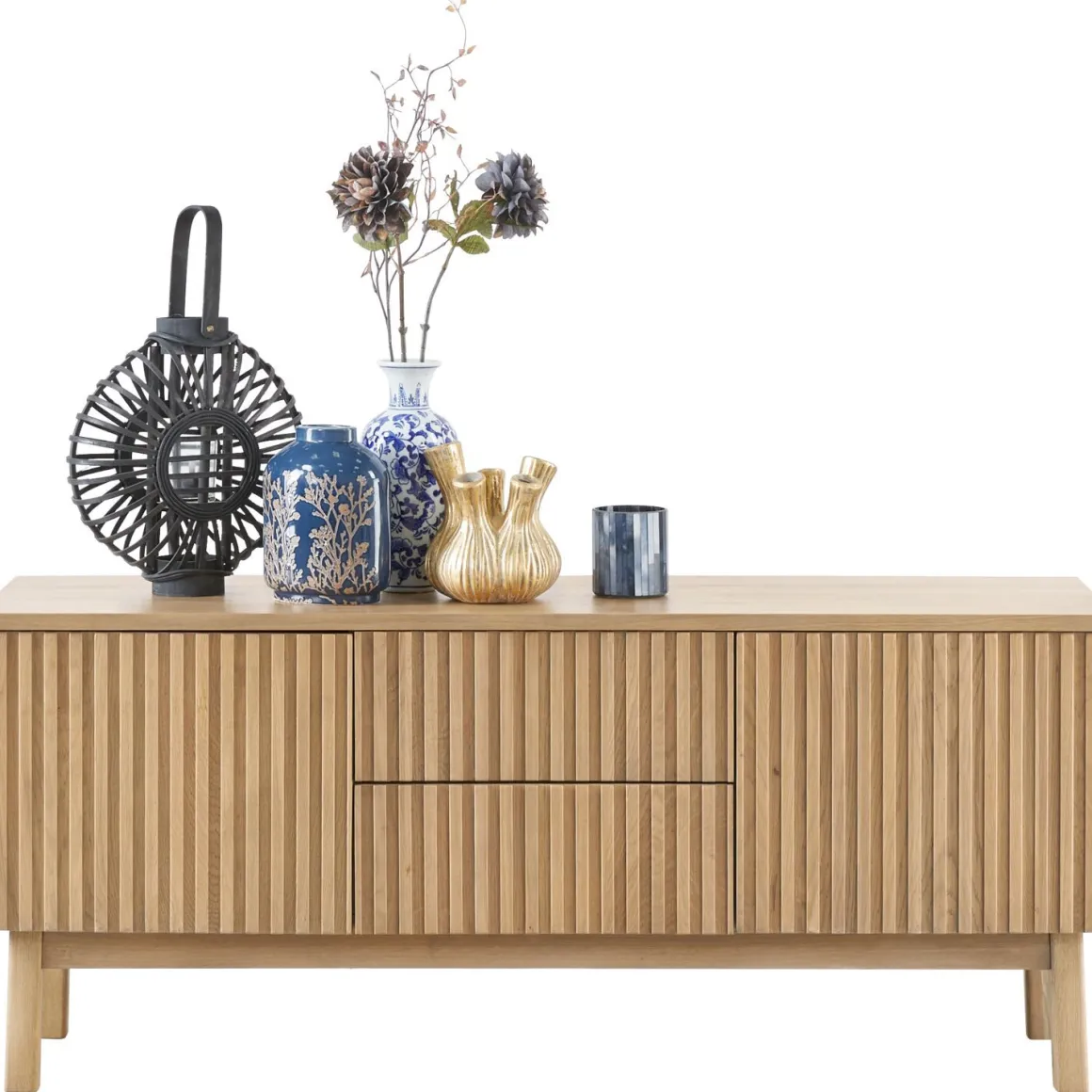 Het TV-meubel Arrosto uit de gelijknamige woonserie combineert vakmanschap met een verfijnde, eigentijdse stijl. Gemaakt van hoogwaardig eikenhout, straalt dit meubel een tijdloze charme uit die perfect past in eigentijdse interieurs. Verkrijgbaar in de stijlvolle kleuren Light- of Dark Roast, is deze een echte blikvanger in elke ruimte. De verfijnde latjes aan de buitenkant geven het TV-meubel deze een subtiele knipoog naar Scandinavisch design, waardoor deze zowel elegant als functioneel is.
