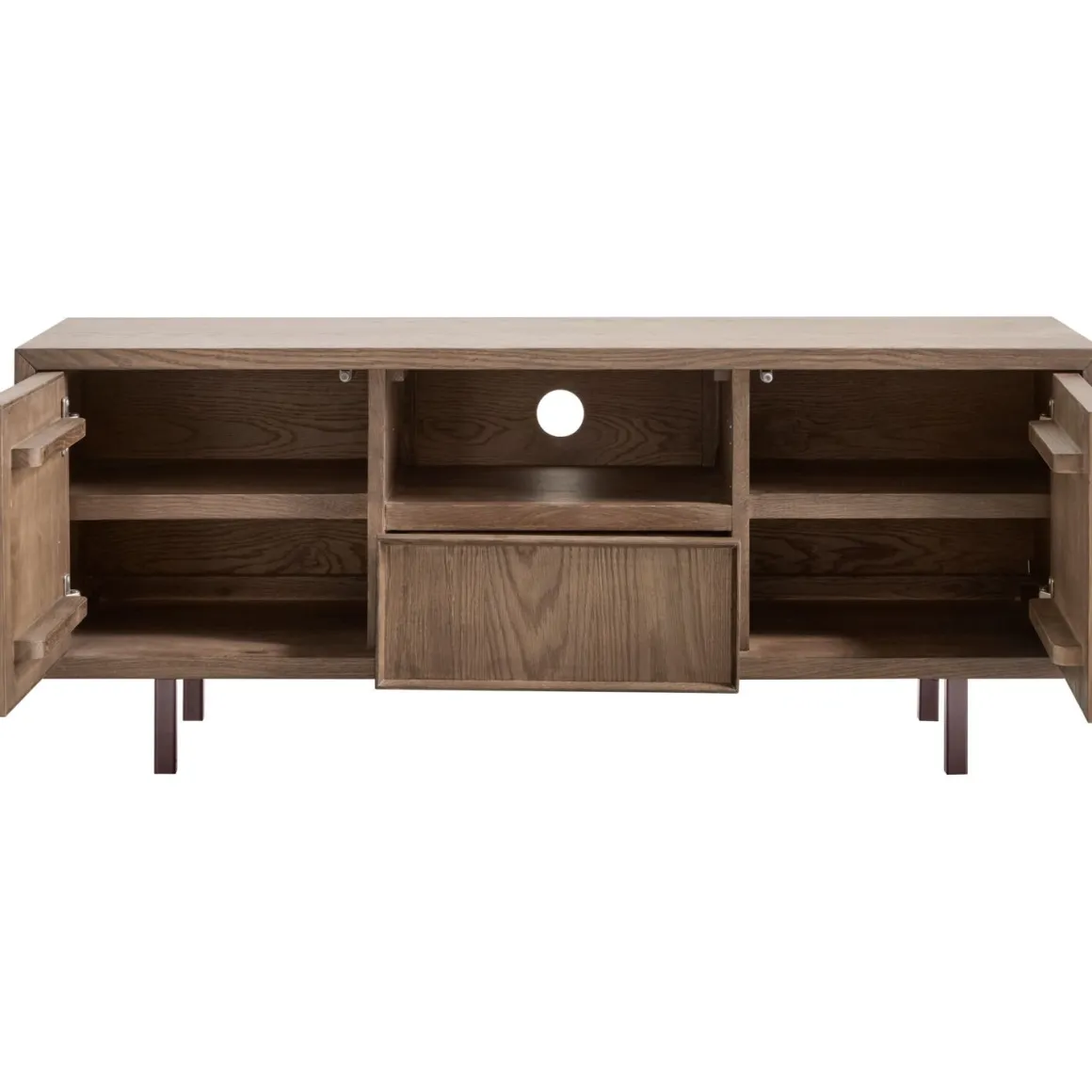 Het tv-meubel maakt deel uit van de woonserie Calvo. Combineer het met de bijpassende opbergkasten, dressoirs en salontafels voor een rustig en harmonieus geheel. De warme houtkleur combineert prachtig met zachte stoffen en lichte tinten, maar vormt ook een stijlvol contrast met donkere accenten.