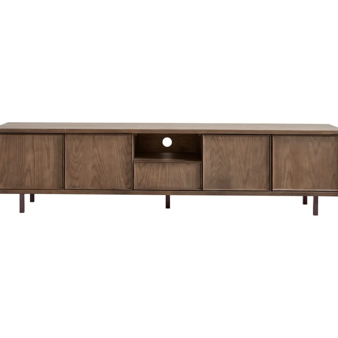 Het tv-meubel maakt deel uit van de woonserie Calvo. Combineer het met de bijpassende opbergkasten, dressoirs en salontafels voor een rustig en harmonieus geheel. De warme houtkleur combineert prachtig met zachte stoffen en lichte tinten, maar vormt ook een stijlvol contrast met donkere accenten.