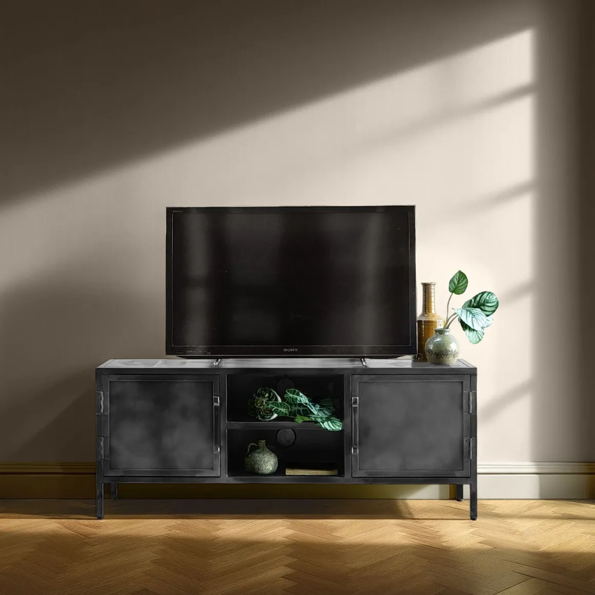 Industriële TV-Meubel van metaal en 137cm breed