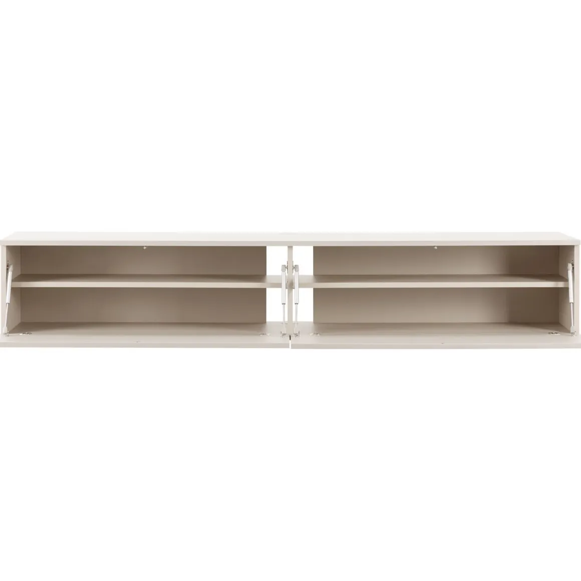 Hangende tv-meubels zijn helemaal van nu. Ze ogen ruimtelijk, modern en geven je interieur een opgeruimde uitstraling. Dit royale model heeft een glad gelakte afwerking in zandgrijs, een warme grijstint met natuurlijke uitstraling. De kleur geeft het meubel een rustige, stijlvolle uitstraling die in elk interieur tot zijn recht komt.