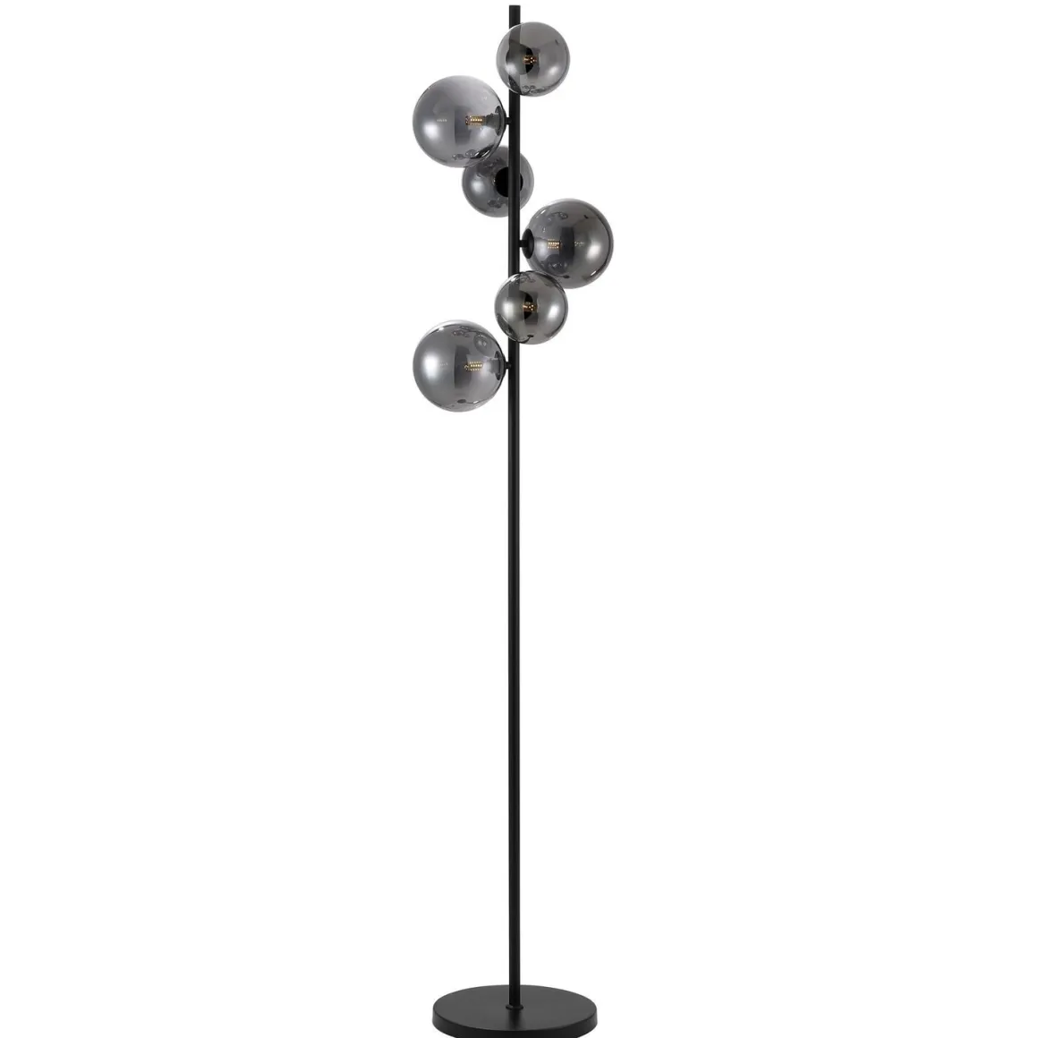 Vloerlamp Olivento zwart smoke glas 6-lichts