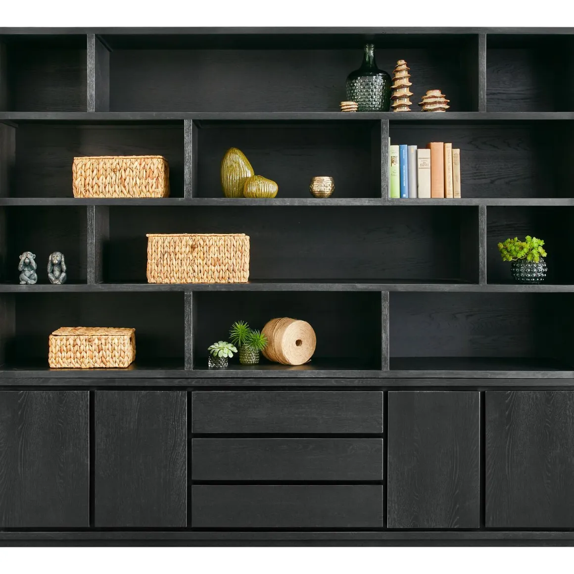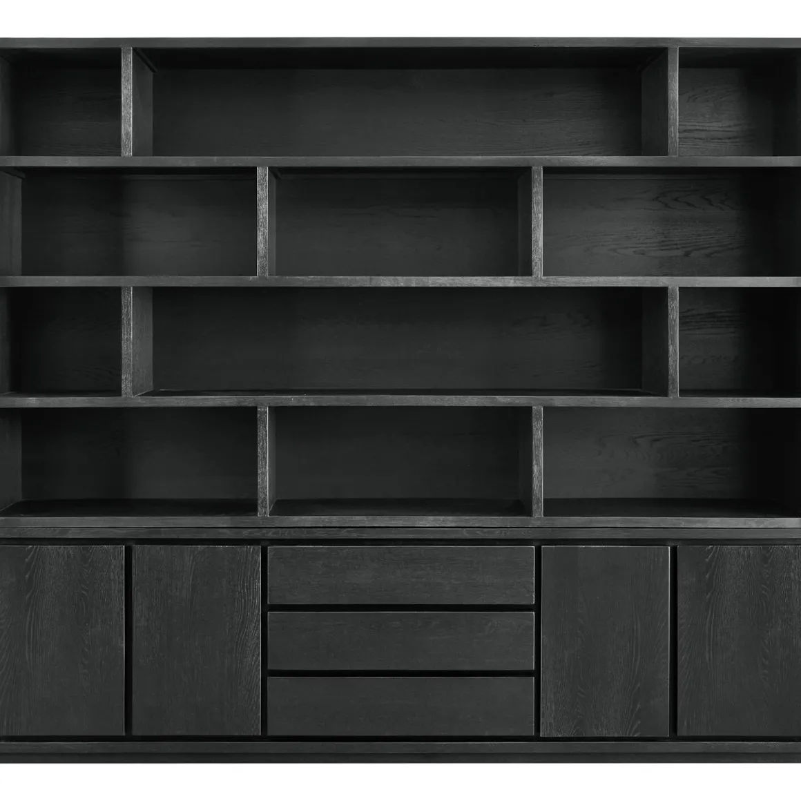 | Uitvoering | Uitgevoerd in eiken in de kleur 60.2 black met 4 deuren, 3 laden en 12 open vakken. |