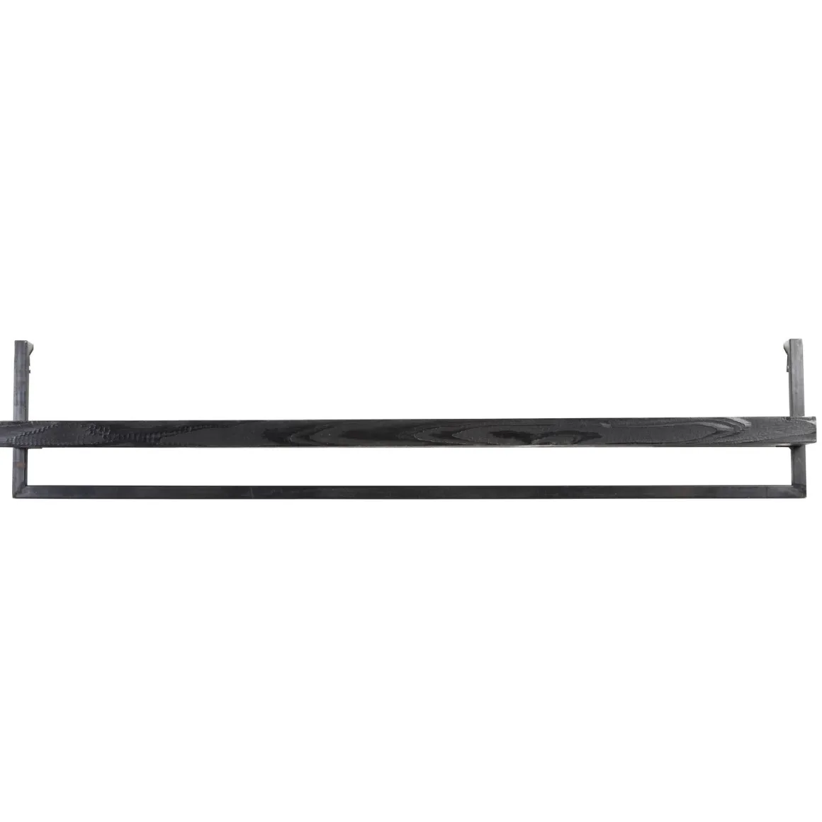 Model Pardal bestaat uit een serie stoere zwarte wandplanken gemaakt van hout en voorzien van een zwart metalen frame.