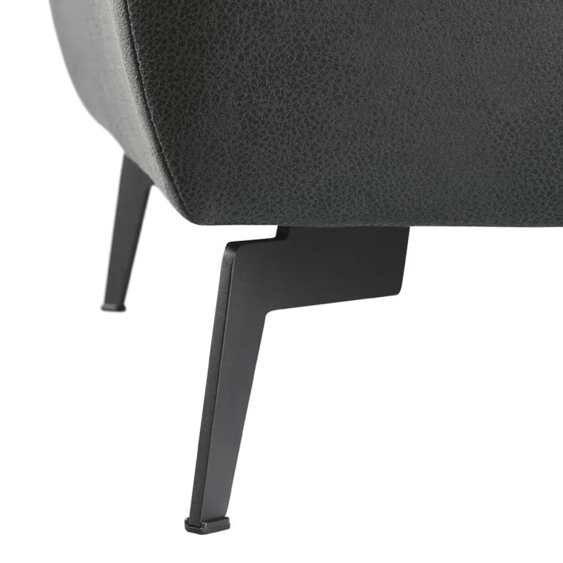 | Uitvoering | Uitgevoerd in microleder dakota 67-antraciet met arm B, verstelbare zitdiepte, HR-koudschuim in de zitting, polyetherschuim in de rug en zwarte metalen poten, type MF1 (15 cm). |