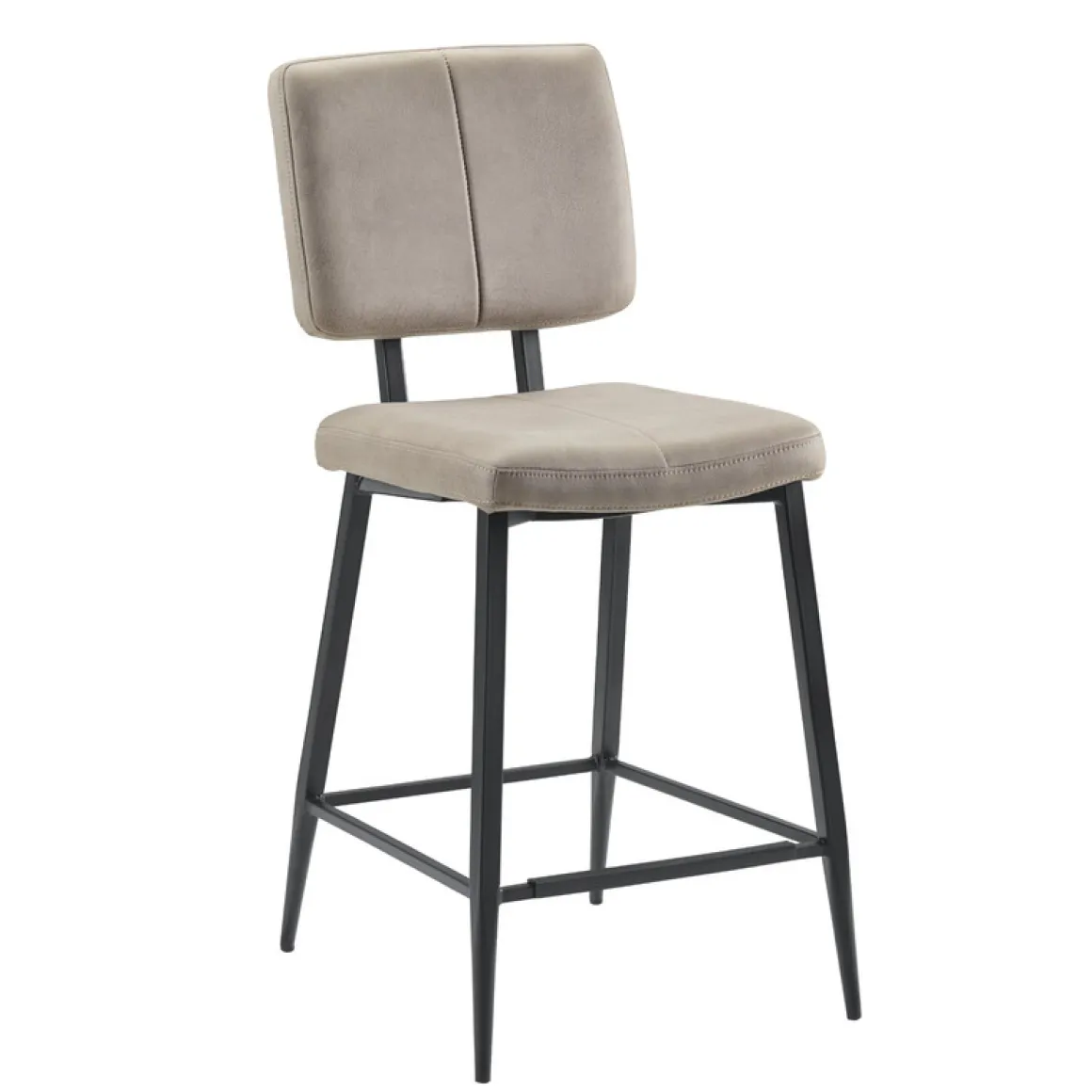 Barkruk Gento is uitgevoerd in een lichtgrijze microvezelstof met zichtbare nerven. Microvezel is een zachte, onderhoudsvriendelijke stof.