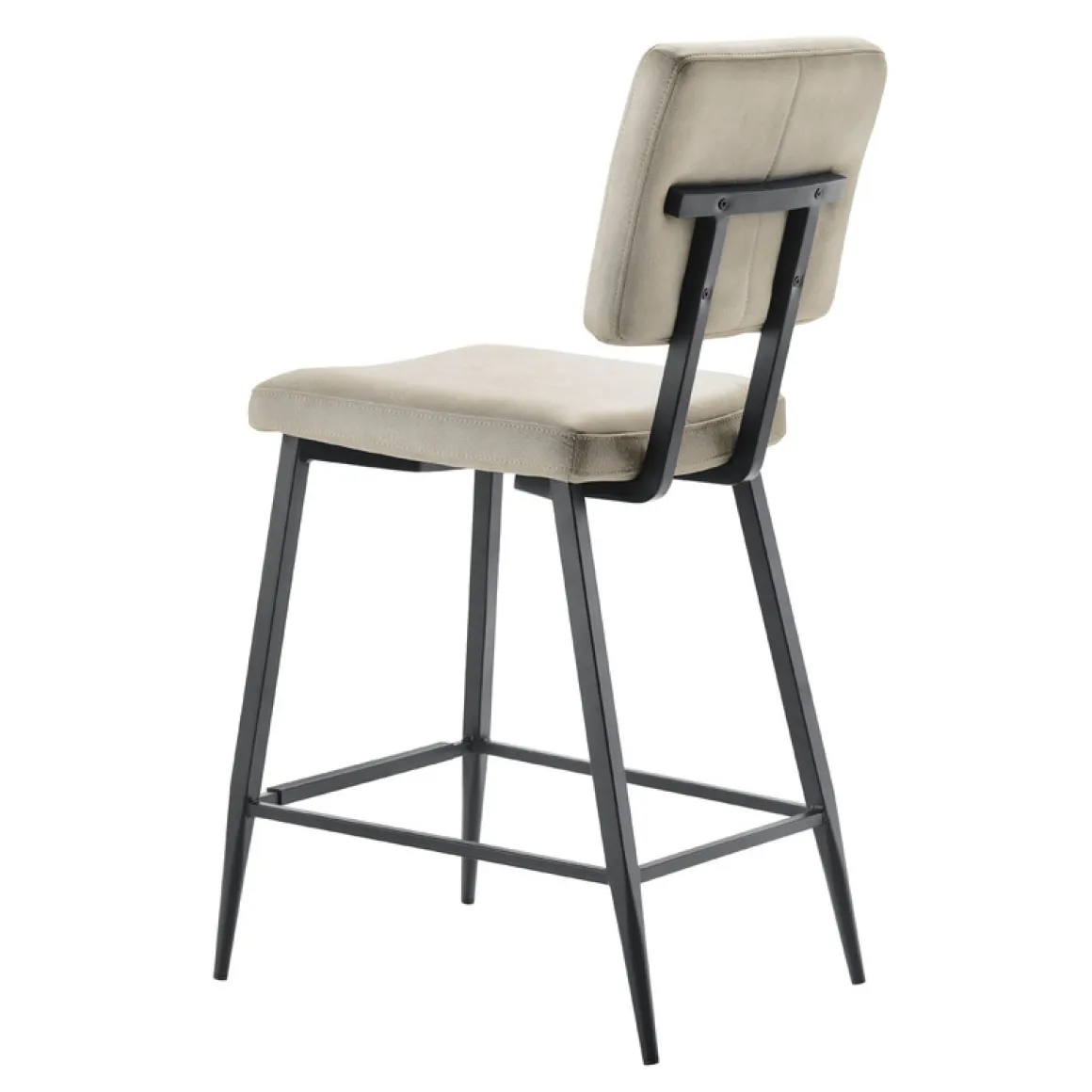 De barkruk is voorzien van polyetherschuim in de zitting en rug, dit zorgt voor een wat steviger zitcomfort. De rugleuning, die door het zwart metalen frame met de zitting verbonden is, loopt iets schuin naar achteren. De poten lopen taps toe naar onderen, waardoor het frame een ranke uitstraling heeft.