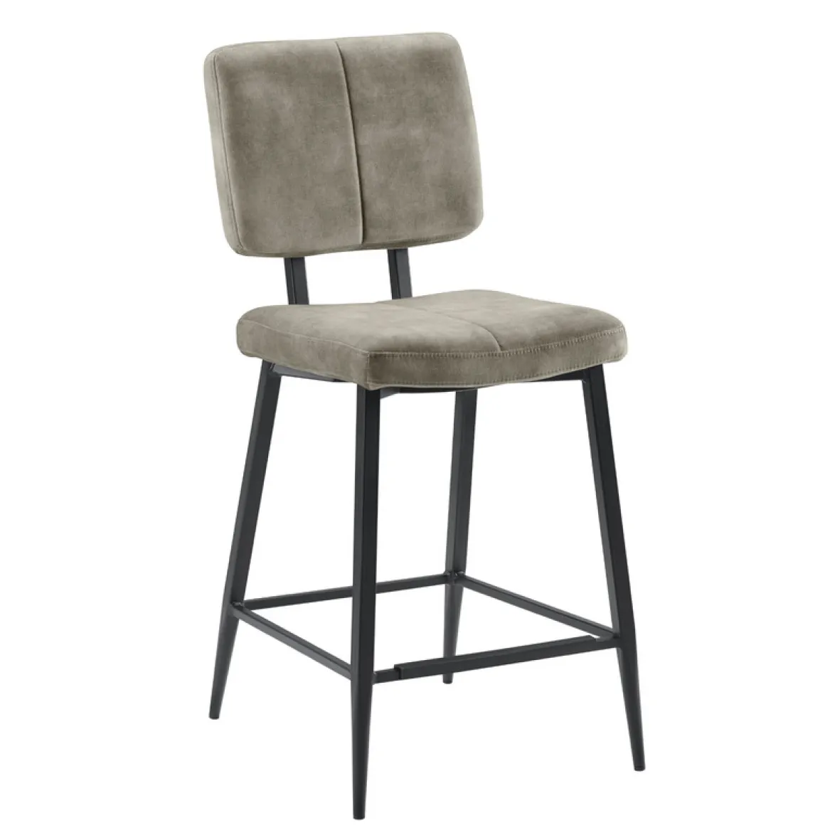 Barkruk Gento is uitgevoerd in een heerlijk zachte velvetstof in een grijze kleur. Velvetstof heeft rechtopstaande, korte vezels, die afhankelijk van de lichtinval en door over de stof te wrijven, lichter of donkerder van kleur lijkt. De stof heeft een luxe uitstraling en voelt zacht en comfortabel aan.