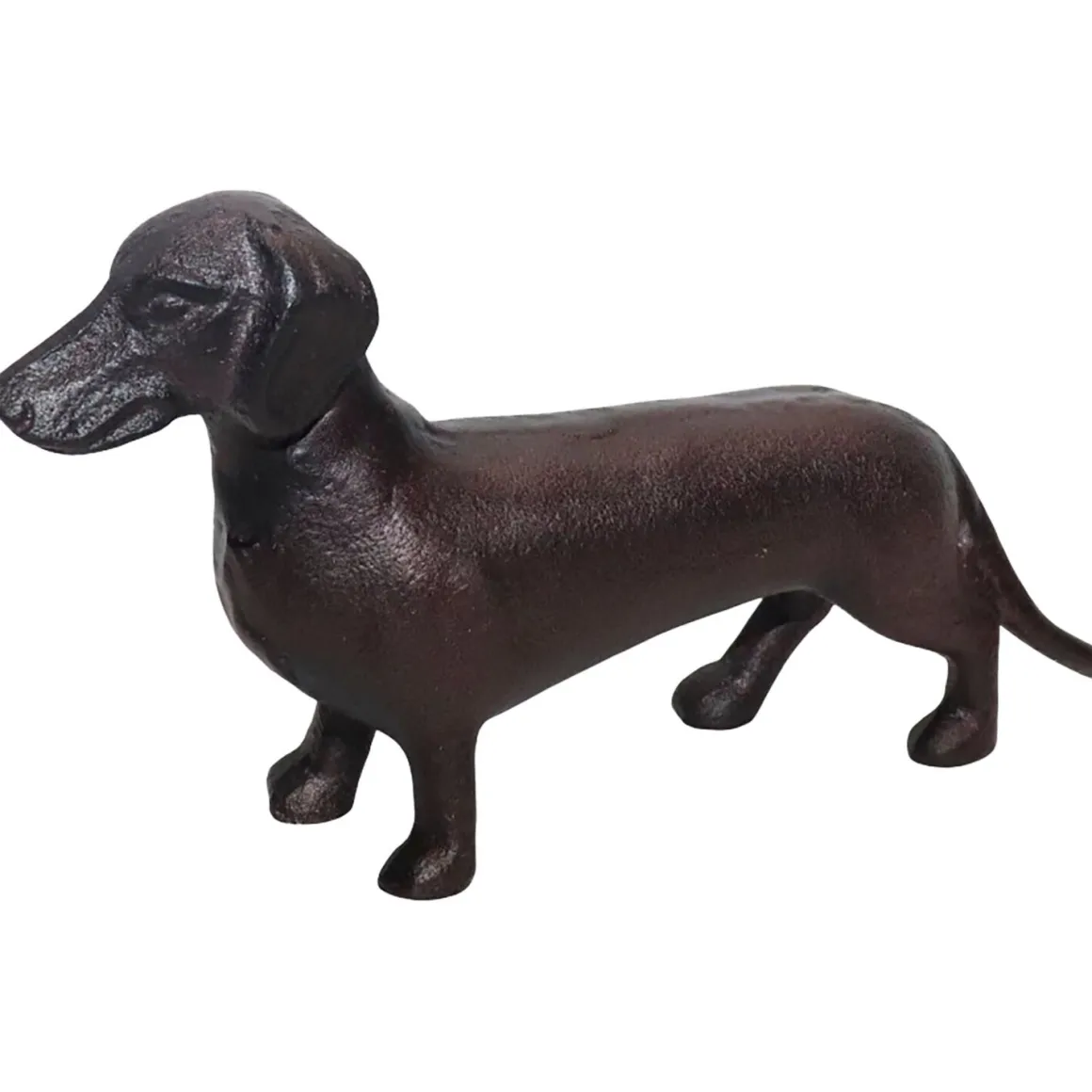 Dit zwarte decoratiebeeld van een teckel voegt een speelse en stijlvolle touch toe aan je interieur. Plaats het op een dressoir, vensterbank of bijzettafel om een warme en persoonlijke sfeer te creëren.