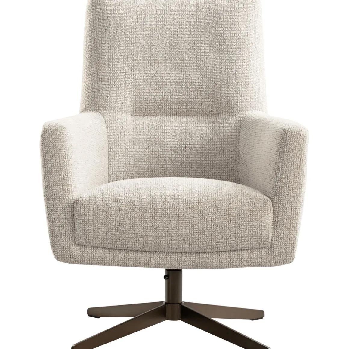 De draaifauteuil Morini combineert modern design met een warme, elegante uitstraling. De zachte stof in een naturel tint zorgt voor een rustige, verfijnde look die moeiteloos past in veel interieurs. In de zitting loopt een subtiele stiknaad die de fauteuil een levendig detail geeft. De metalen 4-teens draaivoet in warme bruine tint zorgt voor een stijlvolle afwerking die het geheel compleet maakt.