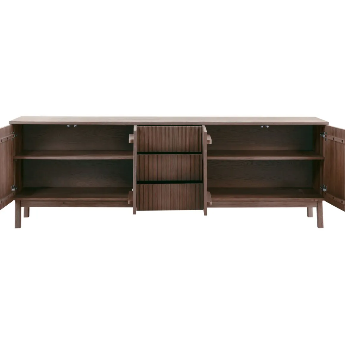 Het dressoir Arrosto uit de gelijknamige woonserie combineert vakmanschap met een verfijnde, eigentijdse stijl. Gemaakt van hoogwaardig eikenhout, straalt dit meubel een tijdloze charme uit die perfect past in eigentijdse interieurs. Verkrijgbaar in de stijlvolle kleuren Light- of Dark Roast, is deze een echte blikvanger in elke ruimte. De verfijnde latjes aan de buitenkant geven het dressoir een subtiele knipoog naar Scandinavisch design, waardoor het meubel zowel elegant als functioneel is.