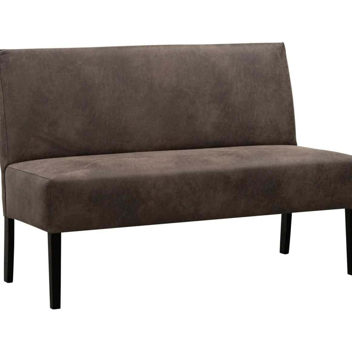 Eetbank Avanza heeft een krachtige, moderne uitstraling. De bank is bekleed met microleder in een stijlvolle donkergrijze kleur. Microleder is een samengestelde bekleding van leder en textiel. Het combineert de luxe uitstraling van leer met het comfort en onderhoudsgemak van stof. De zwarte houten poten zorgen voor een strak geheel dat moeiteloos past in een eigentijds interieur. De poten worden los geleverd en zijn eenvoudig zelf te monteren.
