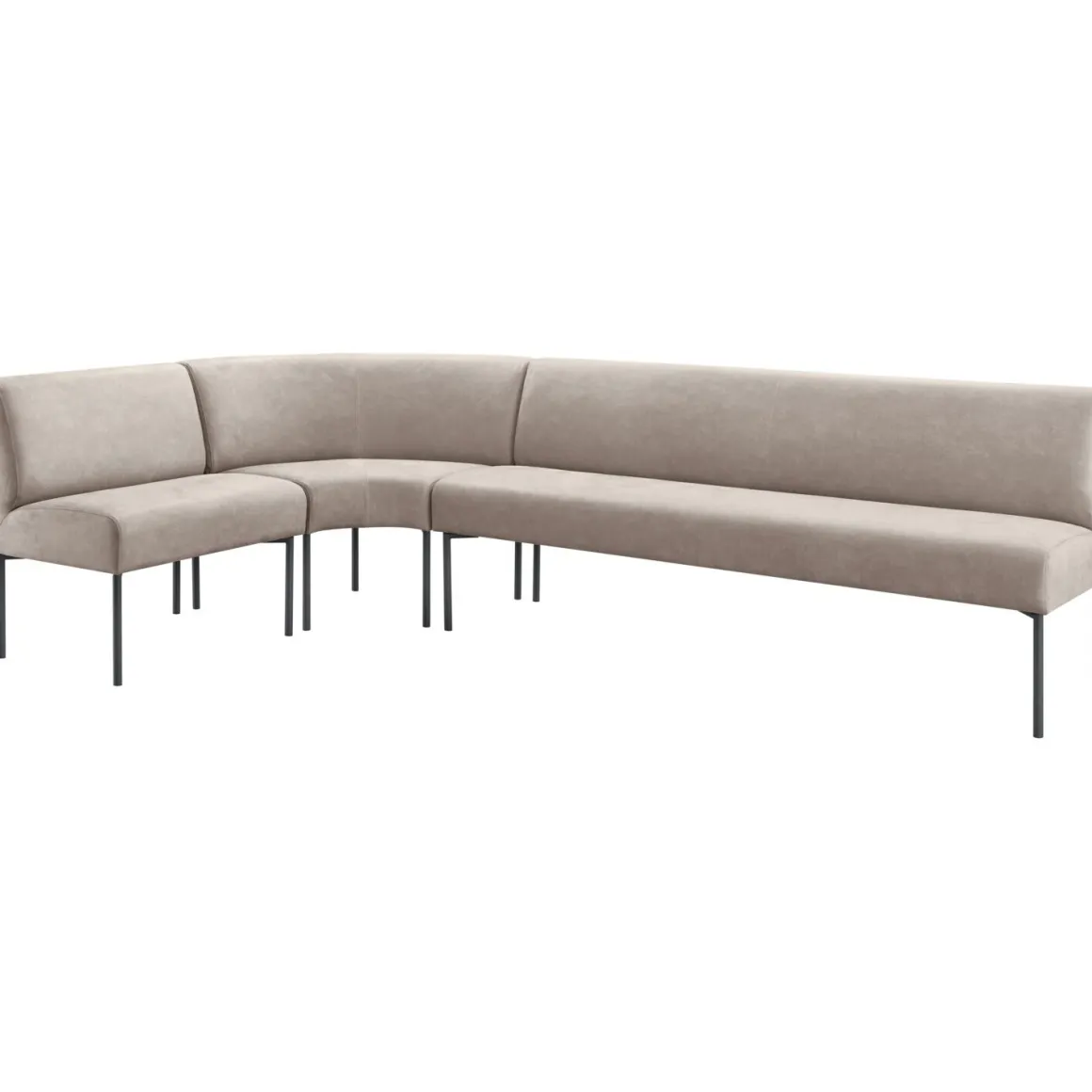| Uitvoering | Rechtesalon 80 + hoek rond + rechtesalon 200, uitgevoerd in microleder bull 60-lightgrey met pocketvering en polyether in de zitting en zwart metalen poten. |