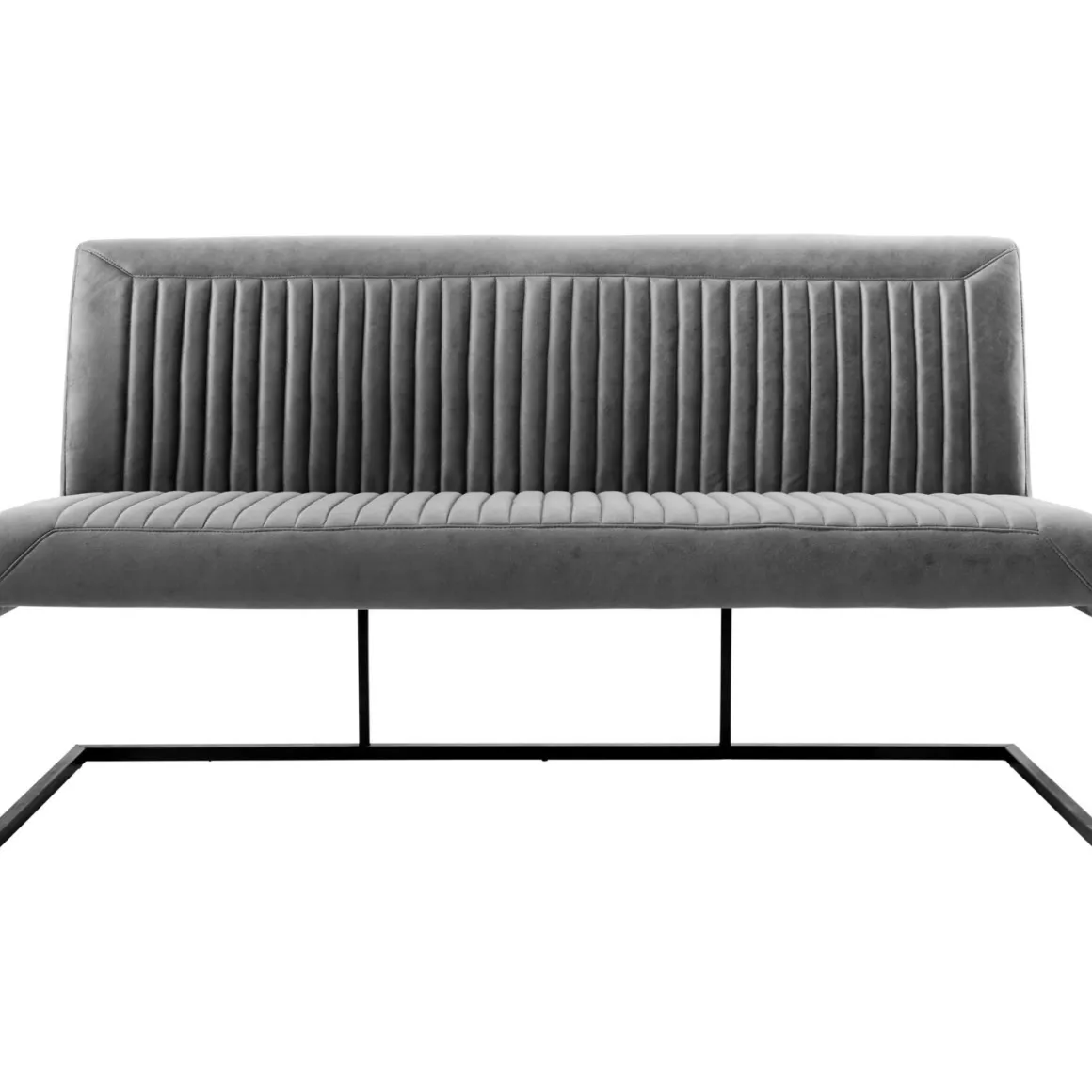 Eetbank Parantino met een breedte van 170 cm is een stoere, industriële bank met een zeer goed zitcomfort. Uitgevoerd in de kleur grey met een old metal black frame. De verticale banen op de zitting en rugleuning geven model Parantino een industriële look en past daardoor in elk modern interieur. Model Parantino is ook verkrijgbaar in de kleuren taupe, cognac en green. De eetbank is makkelijk zelf te monteren.