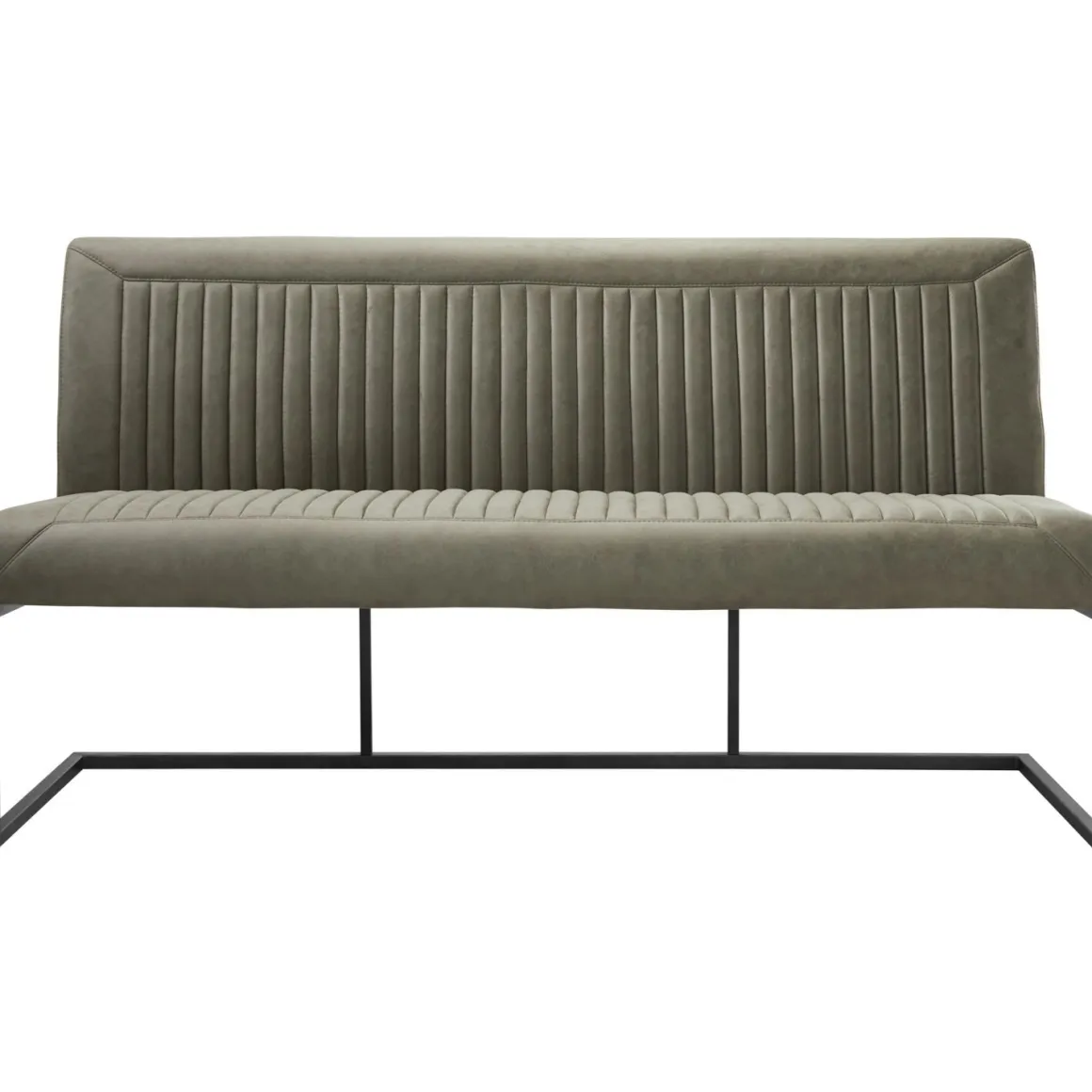 Eetbank Parantino met een breedte van 170 cm is een stoere, industriële bank met een zeer goed zitcomfort. Uitgevoerd in de kleur green met een old metal black frame. De verticale banen op de zitting en rugleuning geven model Parantino een industriële look en past daardoor in elk modern interieur. Model Parantino is ook verkrijgbaar in de kleuren cognac, grey en taupe. De eetbank is makkelijk zelf te monteren.