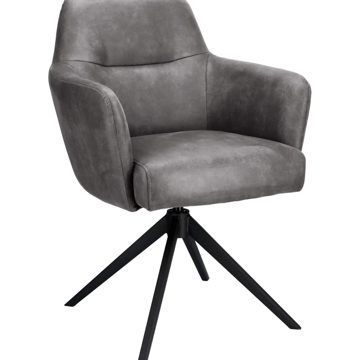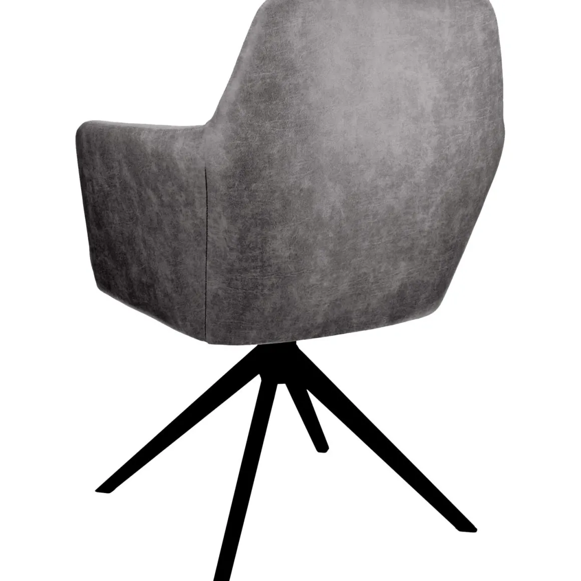 Eetkamerstoel Balestro is voorzien van armleuningen en is bekleed met donker grijs microleder, dit is een samengestelde bekleding bestaande uit een stevige onderlaag van leer en een toplaag van microvezelstof. Dit heeft een luxe, wat stoerdere uitstraling, en voelt toch lekker zacht aan. De armleuningen en de rugleuningen zijn rond afgewerkt, hierdoor heeft de stoel een elegante uitstraling.