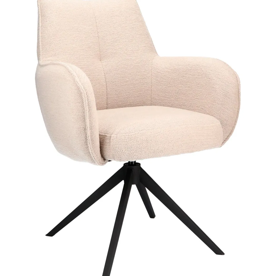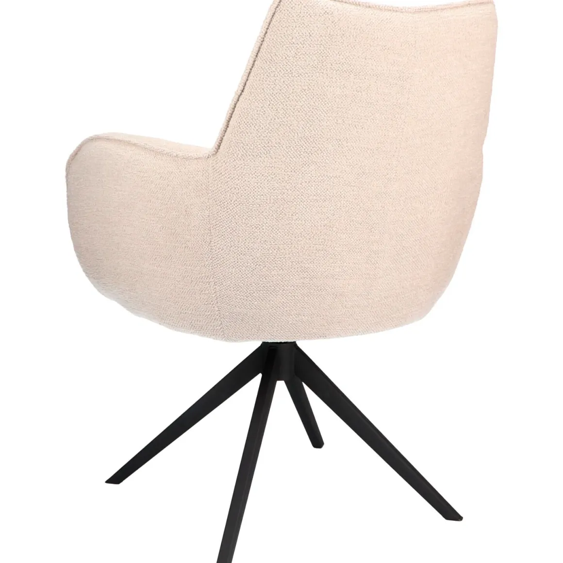 De armstoel Dordona is een comfortabele en moderne toevoeging aan de eetkamer. De stoel is bekleed met de stof Rhythm, die zacht aanvoelt en een subtiele textuur heeft. De naturel kleur zorgt voor een tijdloze uitstraling en voegt een natuurlijke charme toe aan elk interieur. De afgeronde armleuningen en de zwarte metalen draaipoot geven de Dordona een eigentijdse look. Dankzij de prettig gevormde kuip en de vaste kussens in rug en zitting biedt de stoel optimaal zitcomfort, ook tijdens lange avonden aan tafel.