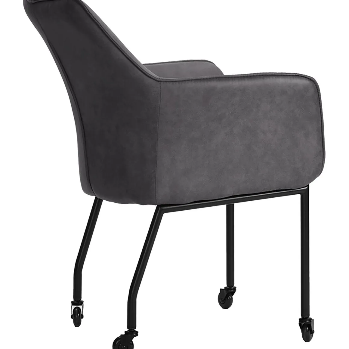 | Uitvoering | Uitgevoerd in stof python 67-antraciet, polyetherschuim in de zitting en de rug met carbon black #65 metalen frame op wielen. |