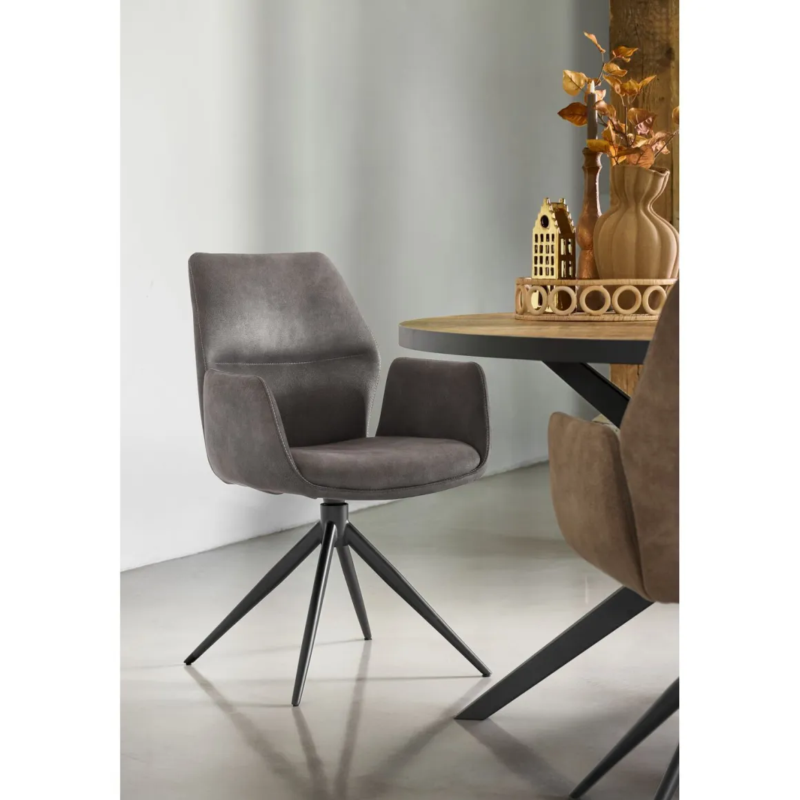 Eetkamerstoel met armleuning in antraciet microvezelstof