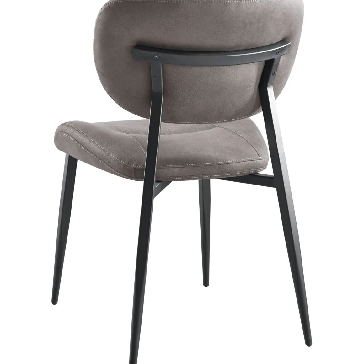 Eetkamerstoel Gomba combineert een tijdloze uitstraling met een luchtig design. Dankzij de open rug krijgt de stoel een speelse uitstraling en oogt de eethoek minder massief. Uitgevoerd in een zachte microvezel in antraciet geeft het ontwerp een moderne uitstraling. De stof voelt prettig aan, is slijtvast en staat bekend om zijn onderhoudsvriendelijke eigenschappen. De sierstiksels op zowel de rugleuning als de zitting accentueren de licht rond lopende vormen, terwijl het zwarte metalen frame de stoel een stoere uitstraling en stevige basis geeft.