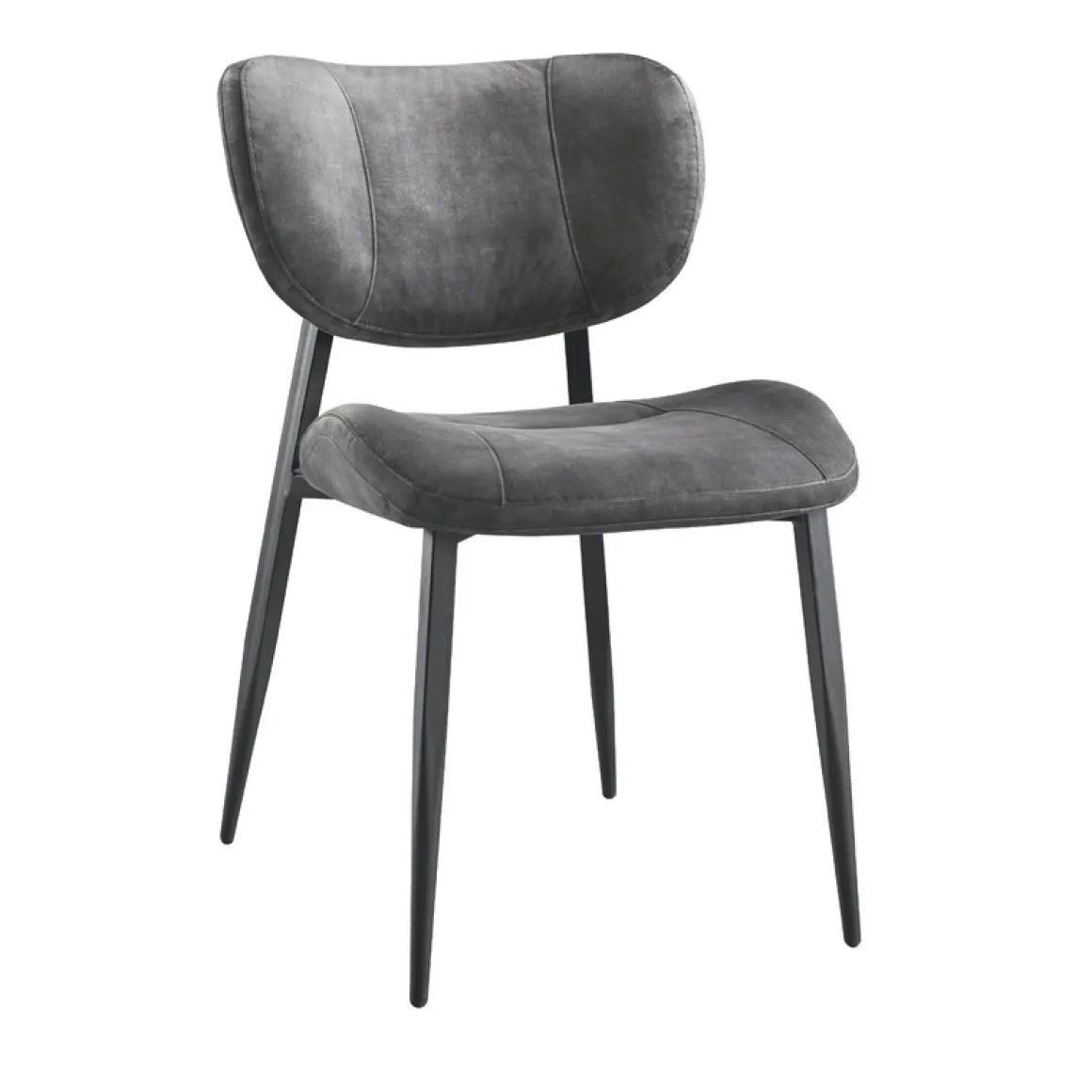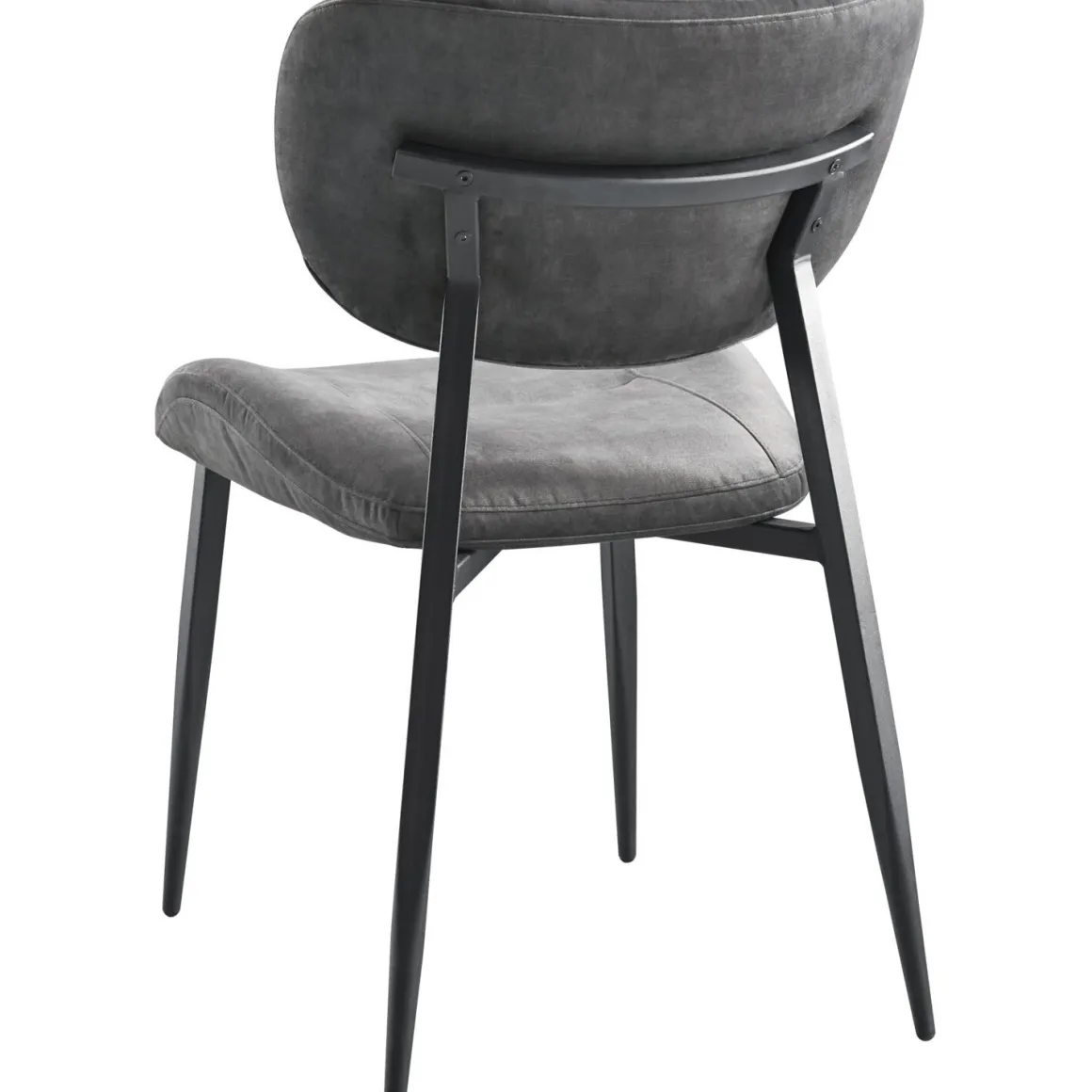 Eetkamerstoel Gomba combineert een tijdloze uitstraling met een luchtig design. Dankzij de open rug krijgt de stoel een speelse uitstraling en oogt de eethoek minder massief. Uitgevoerd in een zachte velvetstof in antraciet geeft het ontwerp een moderne en chique uitstraling. De stof heeft korte, rechtopstaande vezels die zorgen voor een subtiele vleug: afhankelijk van de lichtinval lijkt de kleur lichter of donkerder. Velvet voelt luxe en zacht aan, terwijl het ook onderhoudsvriendelijk is. De sierstiksels op zowel de rugleuning als de zitting accentueren de licht rond lopende vormen, terwijl het zwarte metalen frame de stoel een stoere uitstraling en stevige basis geeft.