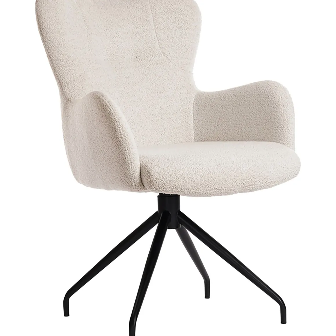 | Uitvoering | Uitgevoerd in stof Rhythm 102 Ecru met polyetherschuim in de zitting en de rug en carbon black #65 kruispoot (knik en taps) en 360 graden draaifunctie. |