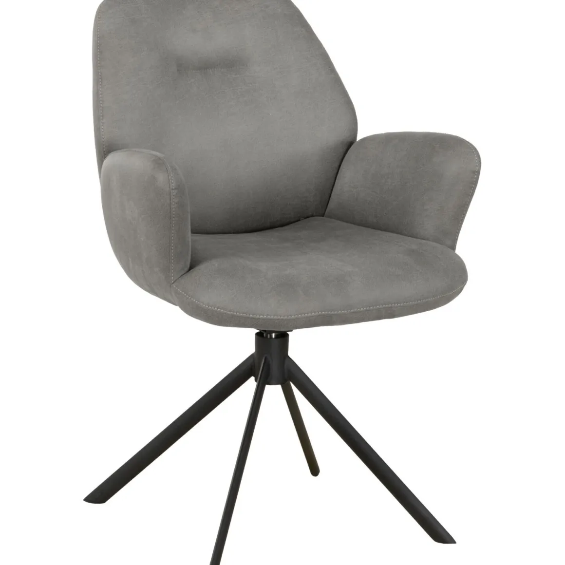 Armstoel Loranzo is uitgevoerd met een zachte microvezelstof in een stijlvolle grijze tint. De stof voelt comfortabel aan, is slijtvast en makkelijk te onderhouden. Een subtiel sierstiksel in de rugleuning en de zwarte metalen draaipoot geven de stoel een moderne, elegante uitstraling. Dankzij de volledig gestoffeerde afwerking past Loranzo perfect in elk interieur.