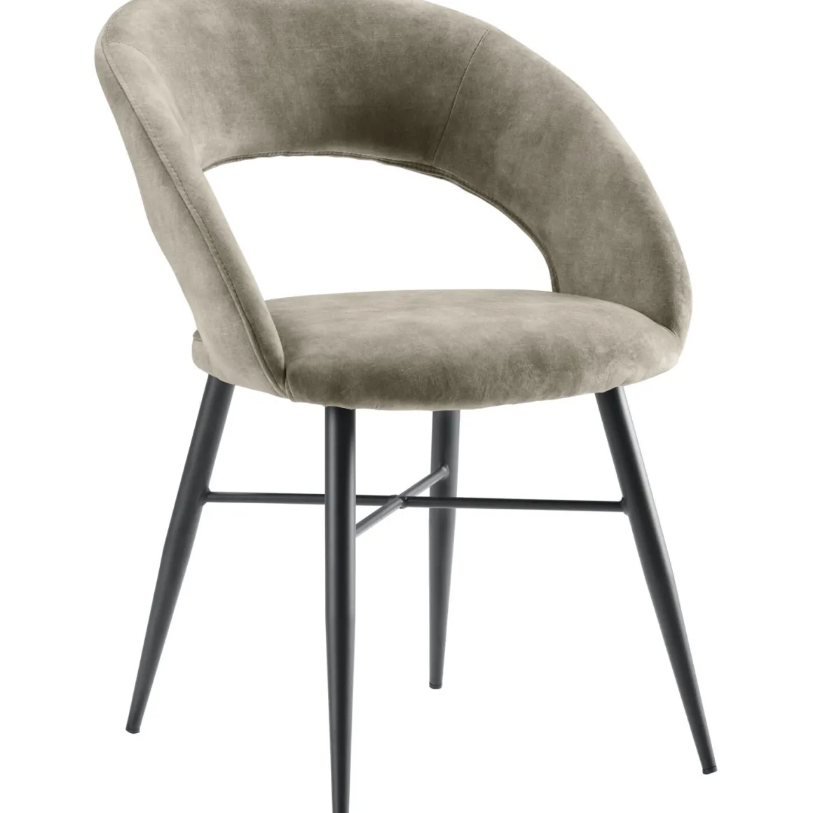 Stoel Marasino is uitgevoerd in een heerlijk zachte velvetstof in een bruin-grijze kleur. Velvetstof heeft rechtopstaande, korte vezels, die afhankelijk van de lichtinval en door over de stof te wrijven, lichter of donkerder van kleur lijkt. De stof heeft een luxe uitstraling en voelt zacht en comfortabel aan.