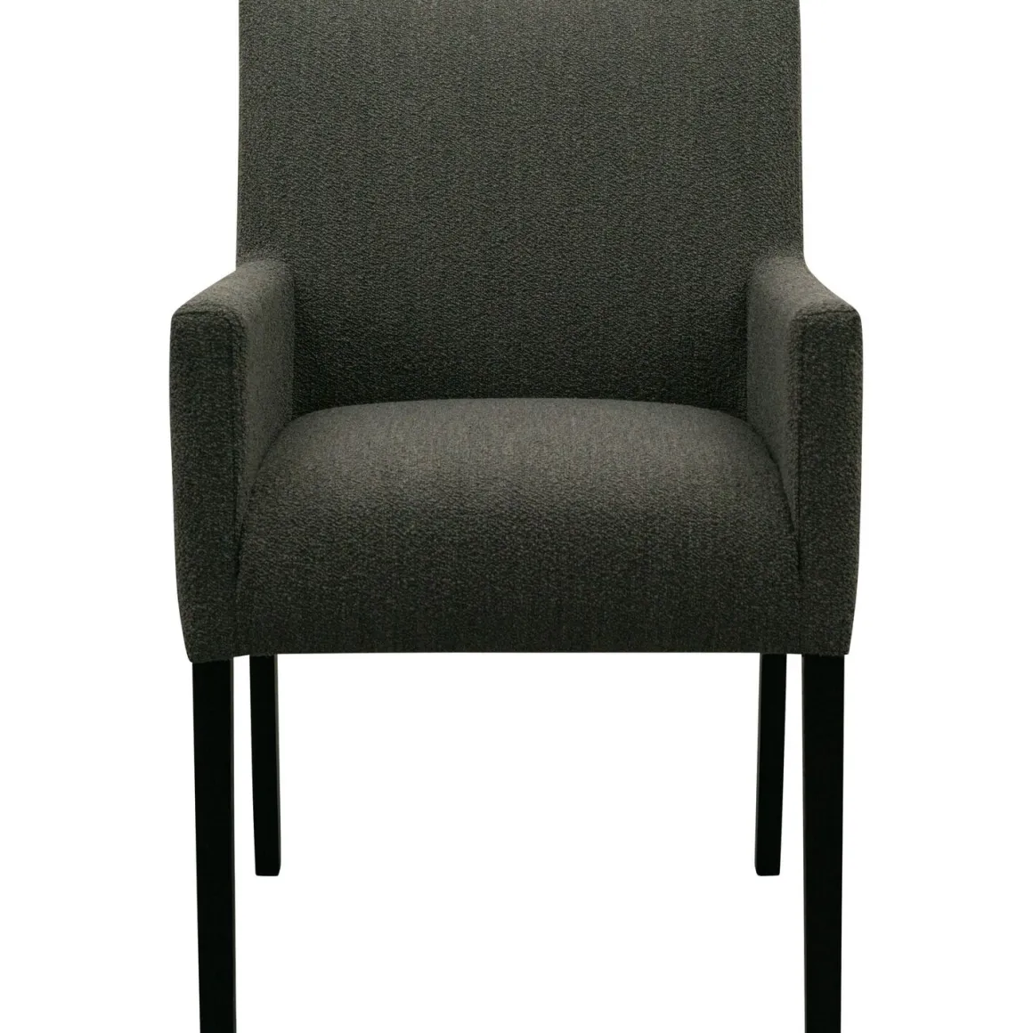 Armstoel Avanza is bekleed met een grijze boucléstof met een rijke, volle structuur. De stof voelt heerlijk zacht aan en heeft een levendige uitstraling dankzij de fijne geweven lussen. Dit geeft de stoel een warme, uitnodigende look die perfect past in een sfeervol interieur. De zwarte houten poten zorgen voor een stijlvol en rustig contrast. De poten zijn al gemonteerd, dus de stoel is direct klaar voor gebruik.