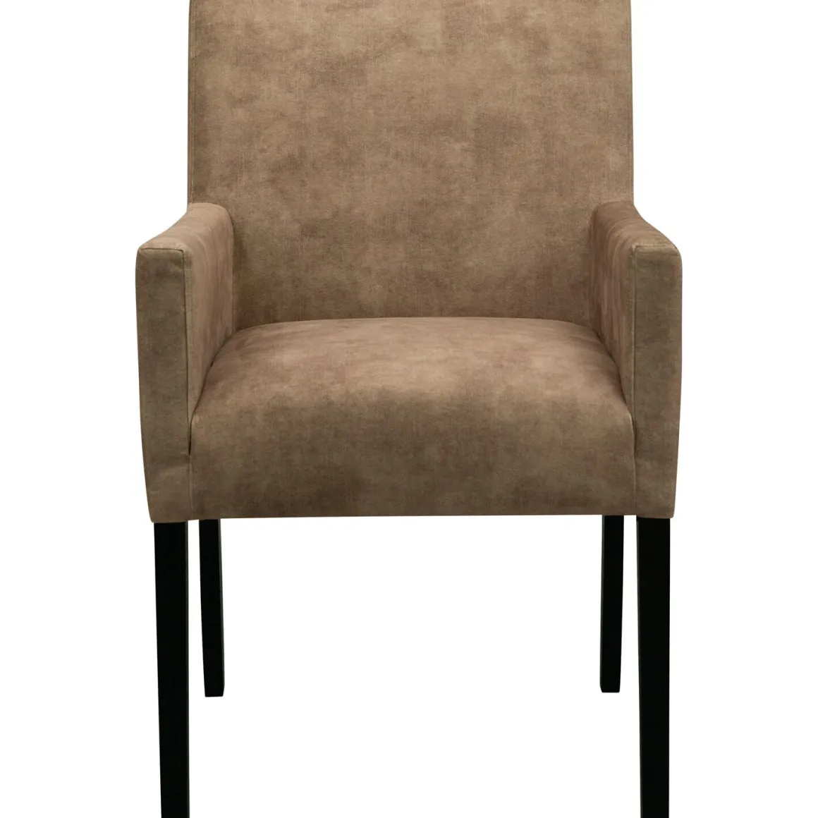 Armstoel Avanza is bekleed met een luxueuze beige veloursstof. Deze hoogwaardige stof voelt heerlijk zacht aan en heeft een rijke uitstraling. Dankzij de vezelstructuur ontstaat een subtiel schaduweffect dat mee verandert met de lichtinval, wat zorgt voor een levendig en warm karakter. De zwarte houten poten maken de stoel helemaal af en geven hem een moderne, strakke uitstraling. De poten zijn al gemonteerd, dus de stoel is direct klaar voor gebruik.