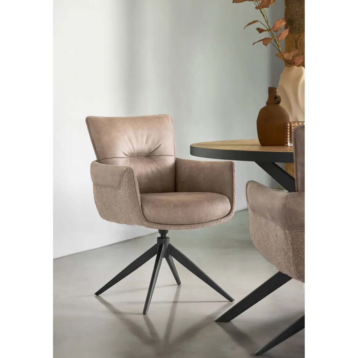 Armstoel Mirandola in taupe kleurige duo-stoffering