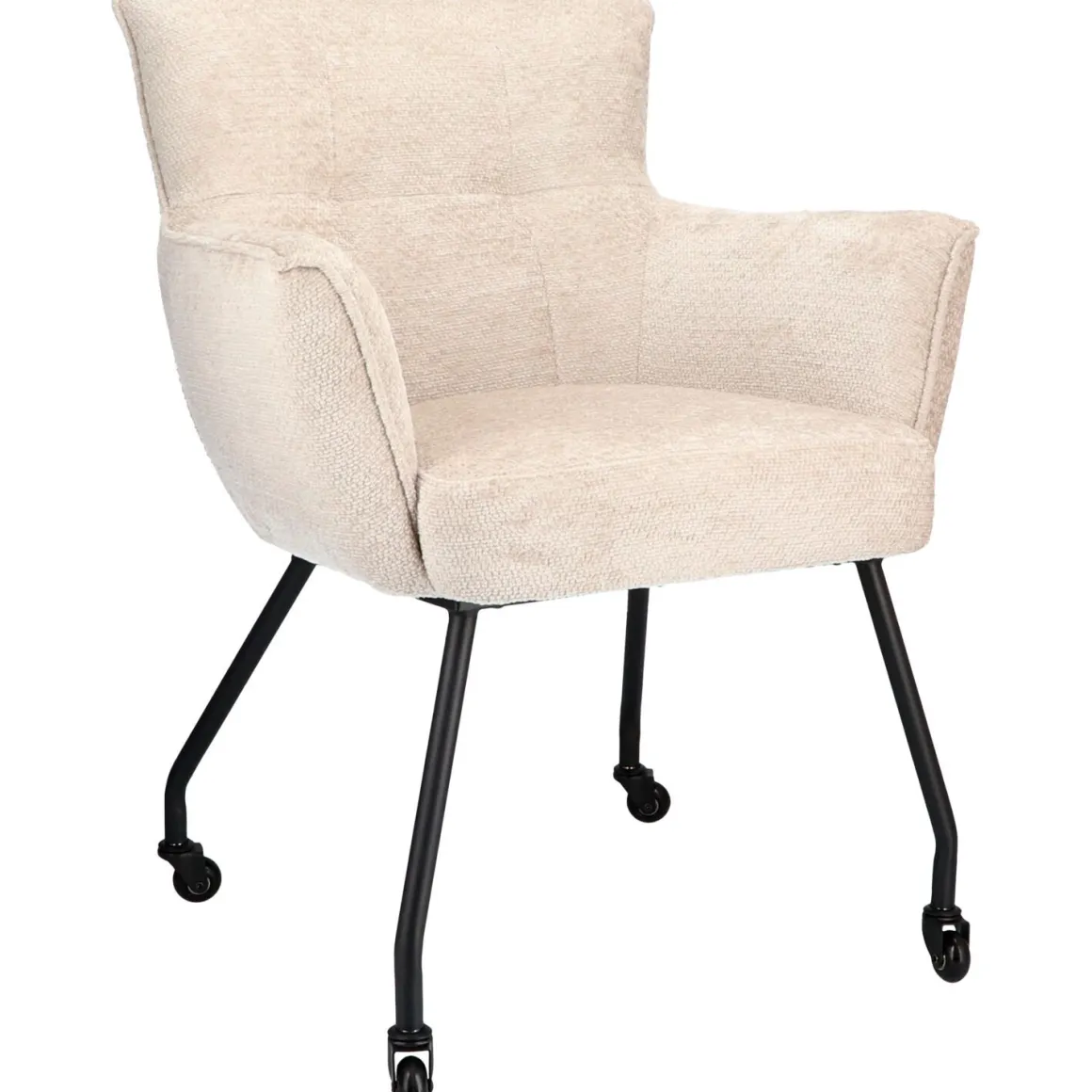 | Uitvoering | Uitgevoerd in stof movie 01-naturel met zwarte metalen poten met zwarte skatewielen. |