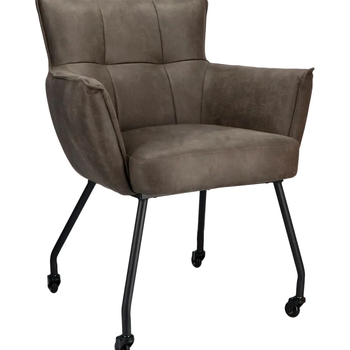 Novile armstoel in donkergrijs microleder met zwarte skatewielen