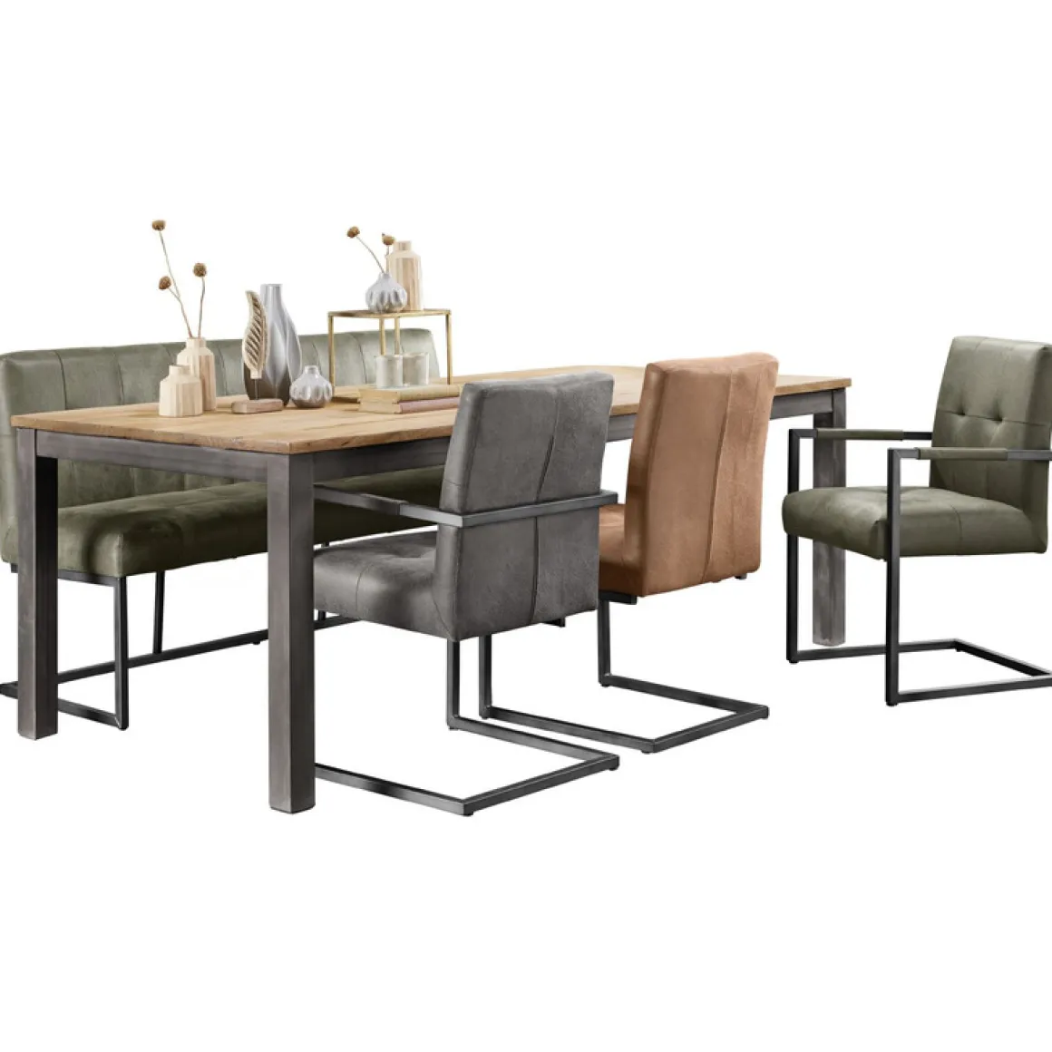Heb je liever een stoel zonder armleuningen, dan is dat ook mogelijk! Tevens is er een bijpassende eetbank, fauteuil of barkruk te verkrijgen met hetzelfde comfort en in dezelfde stoere look.