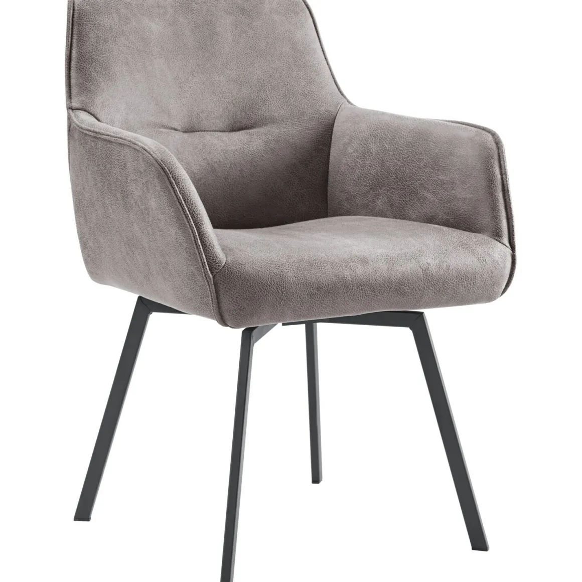 Stoere, grijze eetkamerstoel met armleuning Turelli