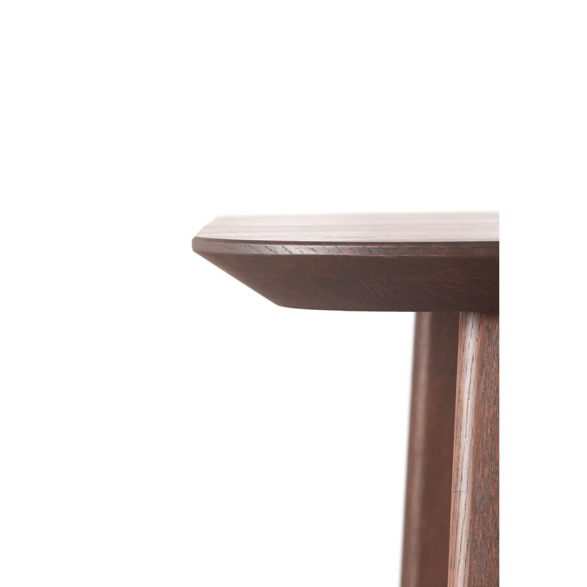Deze eetkamertafel heeft een prachtig blad, afgewerkt met een 2-componentenlak in de warme kleur Dark Roast, die zorgt voor extra bescherming tegen krassen en stoten, en het blad een duurzame en hoogwaardige uitstraling geeft. Dit combineert perfect met de stevige, schuingeplaatste eikenhouten poten van 8×8 cm, die zorgen voor een minimalistisch en elegant ontwerp. De hoogte tot de onderkant van het blad is ca. 71,5 cm, wat handig is om in gedachten te houden als je stoelen met armleuningen wilt gebruiken. De tafelpoten zijn eenvoudig zelf te monteren met behulp van de bijgesloten handleiding.