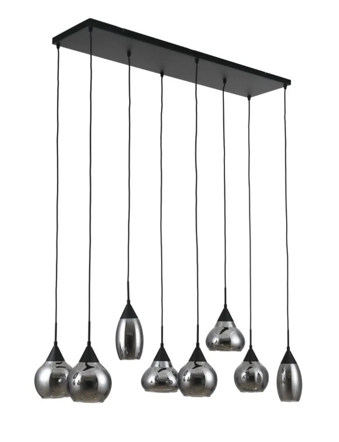 Hanglamp zwart smoke glas 8-lichts – Lungo