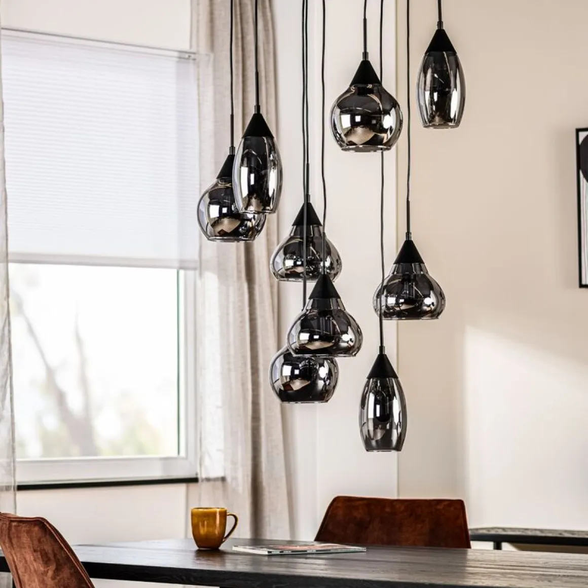Hanglamp zwart smoke glas 9-lichts – Lungo