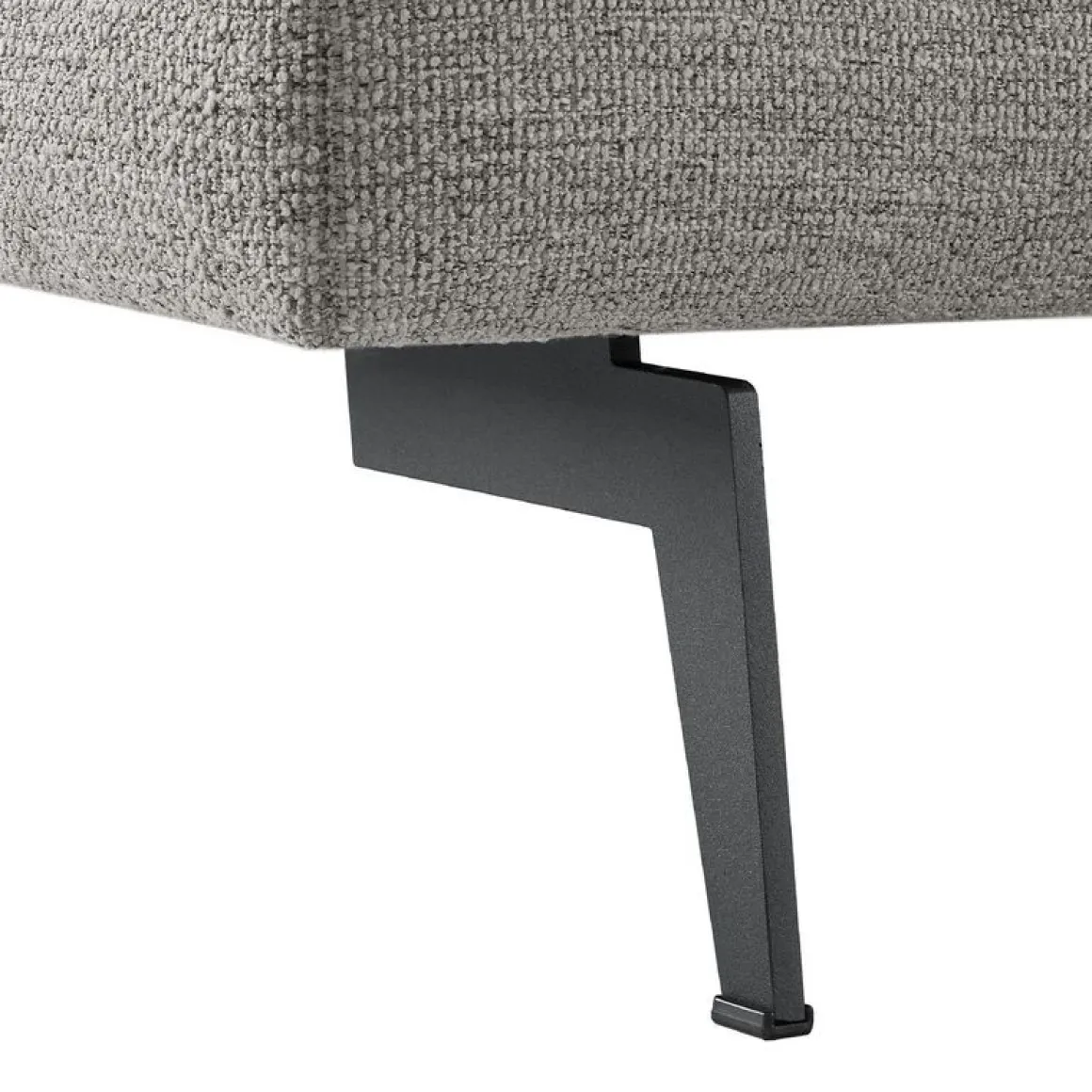 | Uitvoering | 2,5 zits arm links + hoekelement + 2,5 zits zonder armen + chaise longue arm rechts uitgevoerd in stof leaf 149-steel met polyetherschuim met een toplaag van HR-koudschuim in de zitting, mix van polyetherschuim- en siliconenvlokken in de rug en zwarte metalen poten, type M-15 (15 cm). |