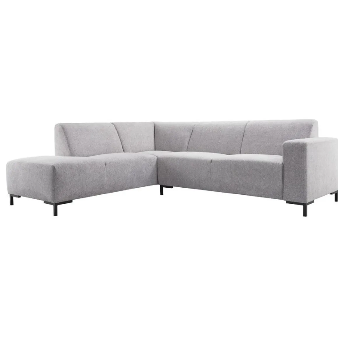 | Uitvoering | Hoek met eiland links + 2,5 zits arm rechts uitgevoerd in stof mito 40-ash grey met arm B, pocketvering met een toplaag van HR-koudschuim in de zitting, polyetherschuim in de rug en zwarte metalen poten, type MF1 (12 cm). |