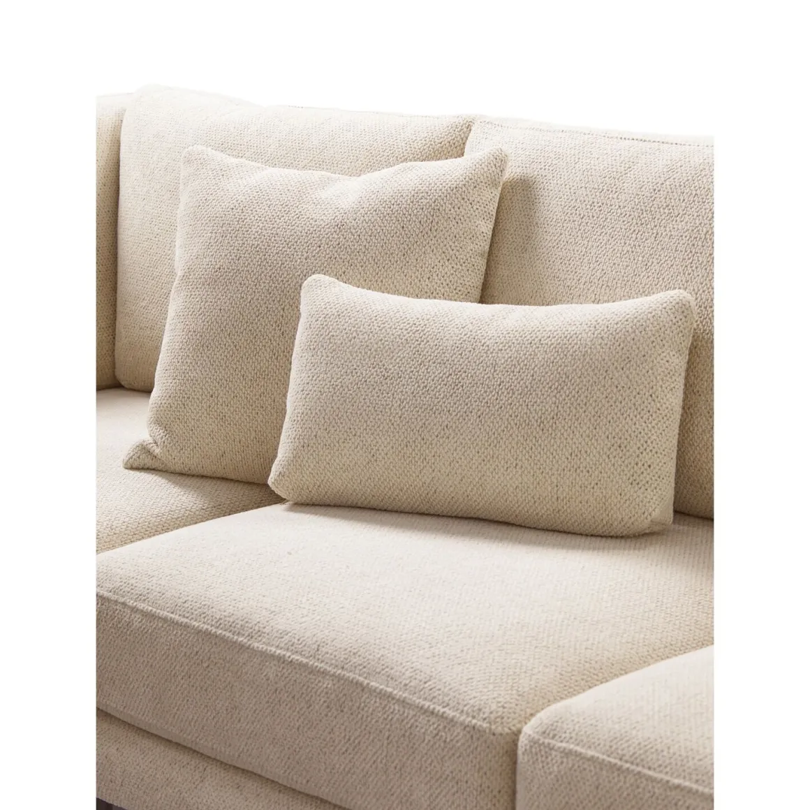 Model Aziri kenmerkt zich door een stijlvol rond accent in het ontwerp, waarmee deze bank perfect aansluit bij de huidige woontrends. Deze bank is bekleed met een sterk, slijtvast geweven stof met chenille-garens. De zachte structuur voelt aangenaam aan en geeft de bank een warme, luxe uitstraling. De ecru kleur versterkt het lichte en elegante karakter en laat zich makkelijk combineren in elk interieur.