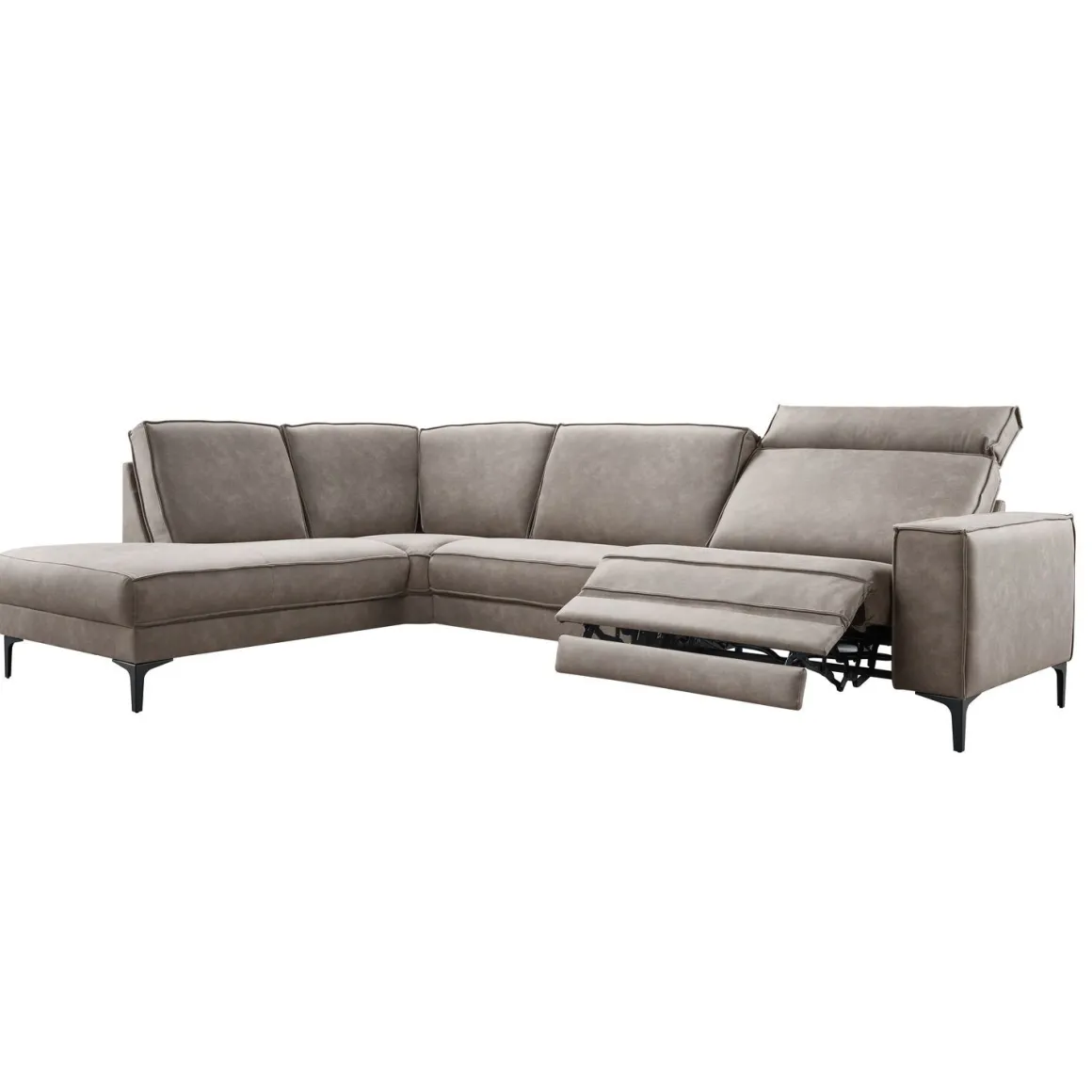 Donkerbruine hoekbank links Barrio met elektrische relaxfunctie