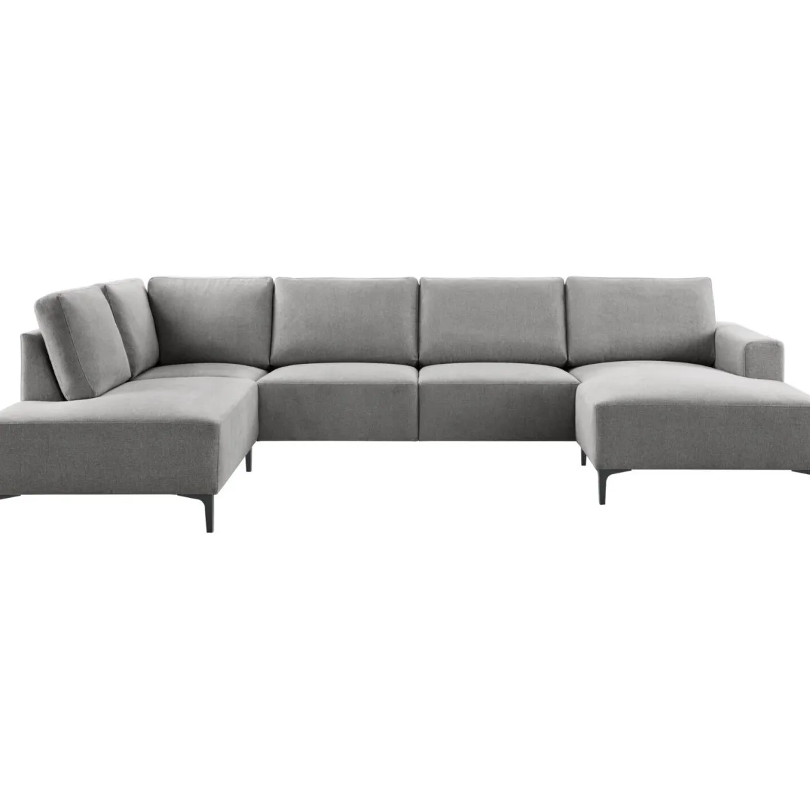 | Uitvoering | Hoek met eiland links + 2,5 zits zonder armen + chaise longue arm rechts uitgevoerd in stof enter 87-slate met zwart metalen poten, hoogte 15 cm. |