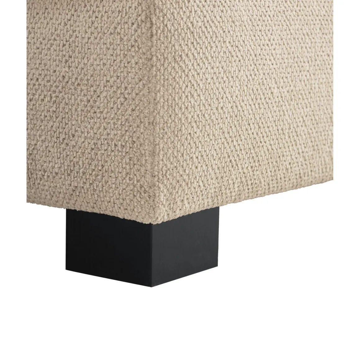 Hoekbank Licato is uitgevoerd in een sterke, slijtvaste geweven stof met chenillegarens. De zachte structuur voelt aangenaam aan en geeft de bank een warme, luxe uitstraling. De naturel ecru kleur versterkt het lichte en elegante karakter en laat zich moeiteloos combineren in verschillende interieurs. De bank is afgewerkt met een vlindernaad, wat het ontwerp een subtiel en stijlvol accent geeft. De zwarte houten poten vormen een mooi contrast en geven het geheel een moderne basis.