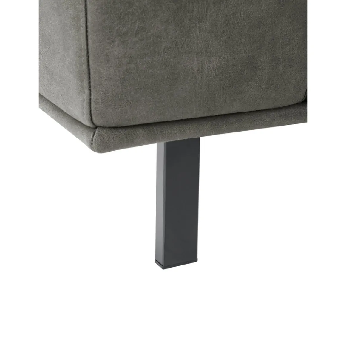 Hoekbank Pantini heeft een stoere en moderne uitstraling dankzij de combinatie van de volle zitting, de dunne plint en de zwarte metalen designpoten. De bank is uitgevoerd in donkergrijs microleder, een sterk en onderhoudsvriendelijk materiaal dat zacht aanvoelt en een licht geschuurd effect heeft voor een stoer en eigentijds karakter. De brede armleuning van 26 cm versterkt het robuuste ontwerp en maakt Pantini een echte blikvanger in je interieur.