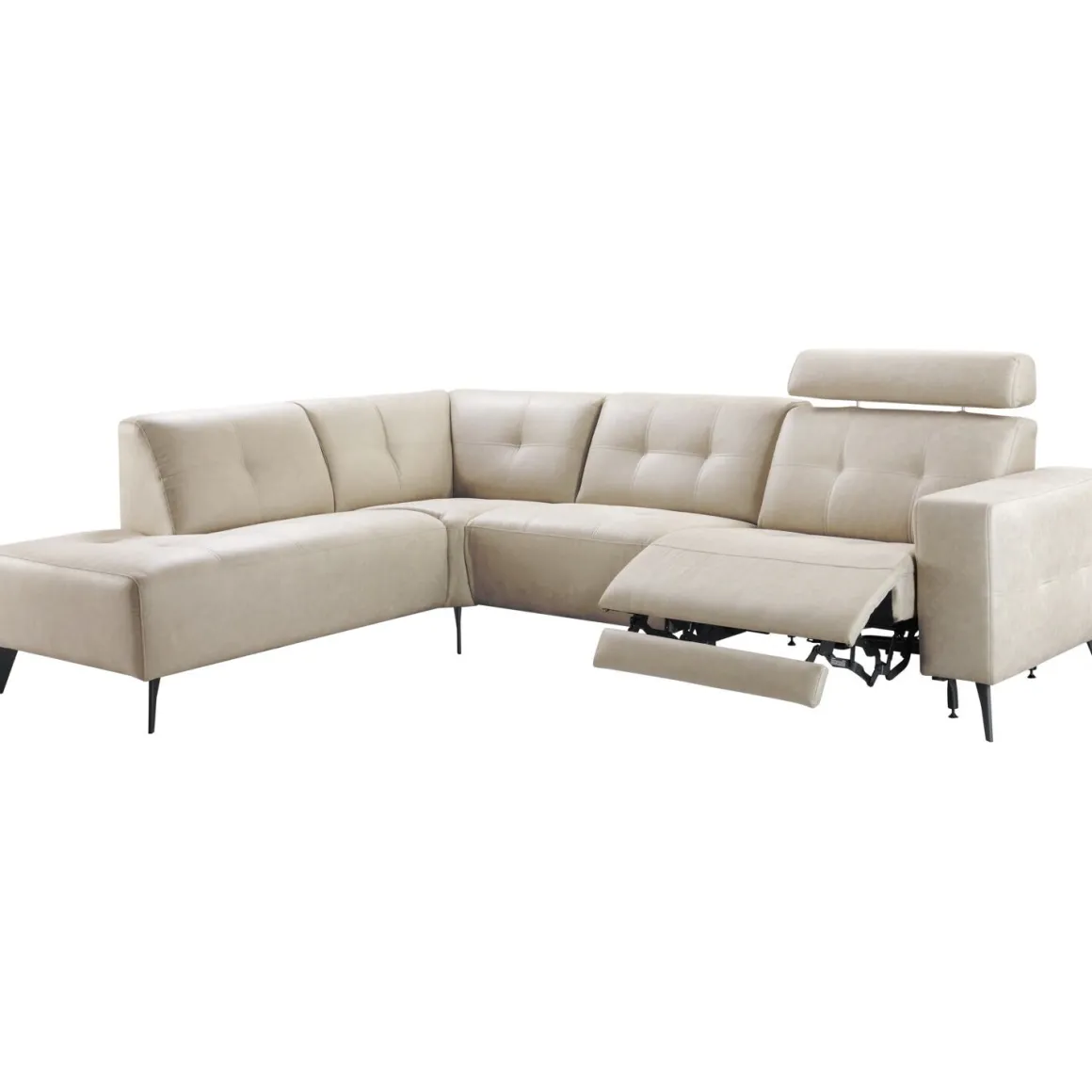 Hoekbank Piorino in grijsbeige microvezel met relaxfunctie en verfijnde stiksels - Met elektrische relaxfunctie voor rug, voet en hoofdsteun